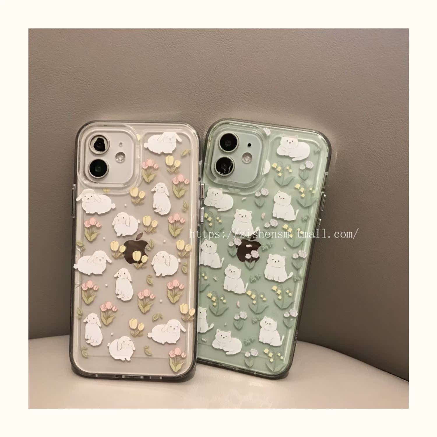 可愛貓咪兔子郁金香適用于蘋果14新款ins花園13promax手機殼小羊11pro透明xr情侶8plus卡通女款冬天太空殼