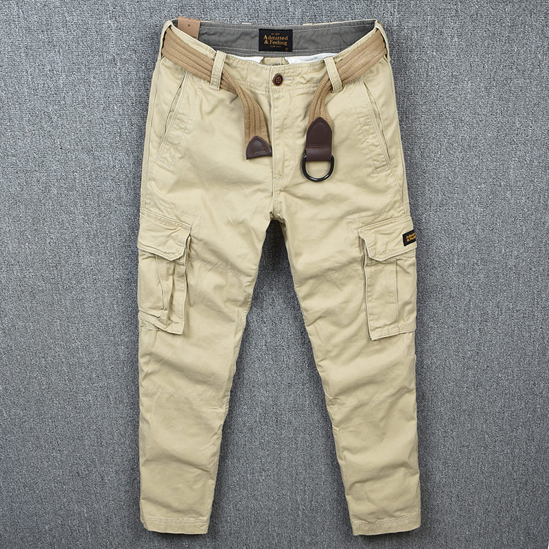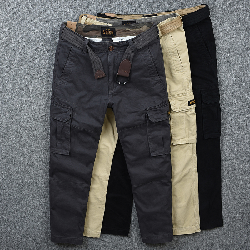 男秋季全棉厚實小直筒寬松工裝褲