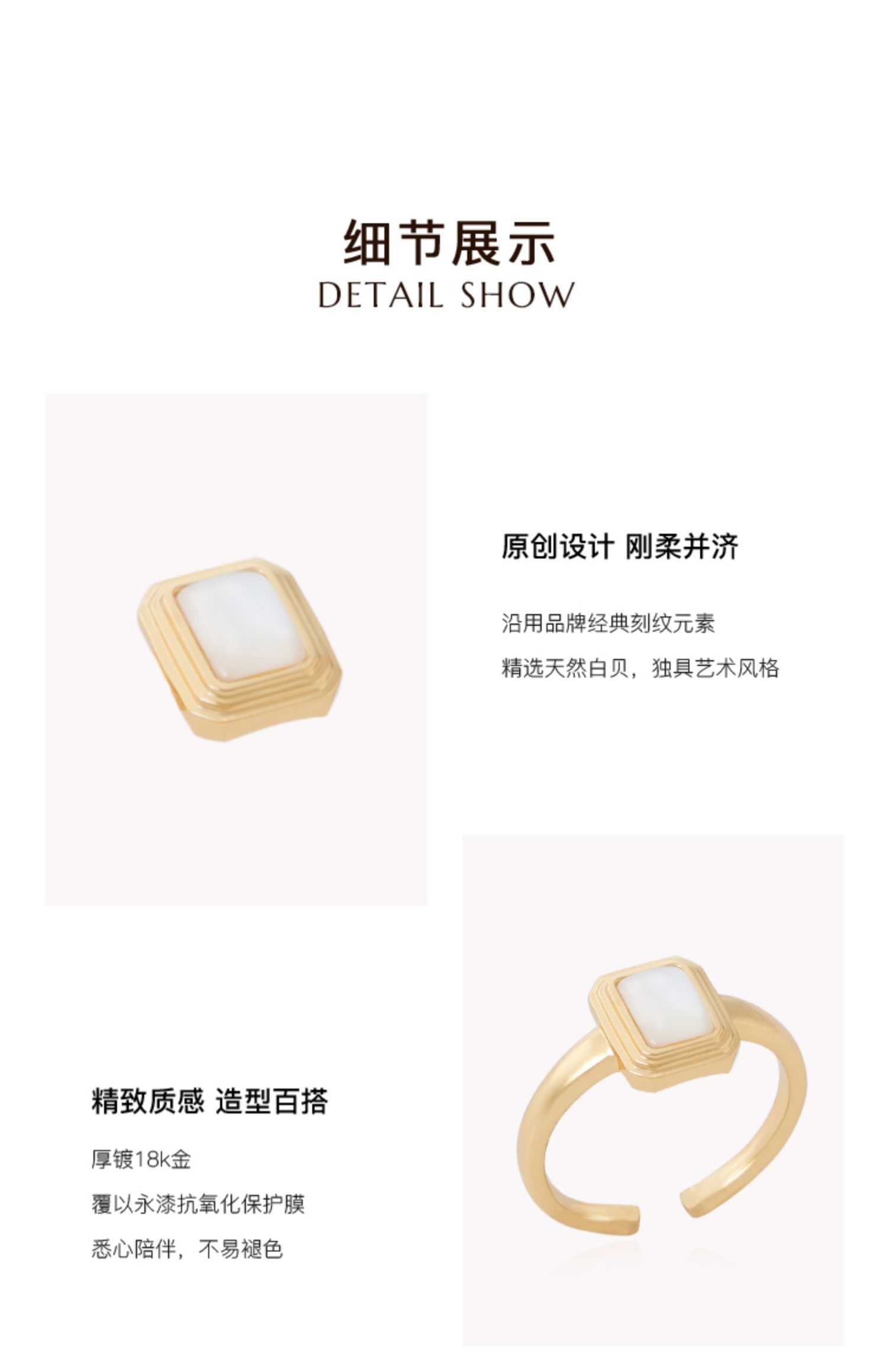 68¥ CZ0001 4dneW10kDLy¥ https://m.tb.cn/h.5hN6VML Neverfar畫框系列貝母戒指簡約時尚職場百搭小眾戒指女高級感 --------------------- Neverfar畫框系列貝母戒指簡約時尚職場百搭小眾戒指女高級感 --------------------- 【原售價】288.00元 【現售價】288元。