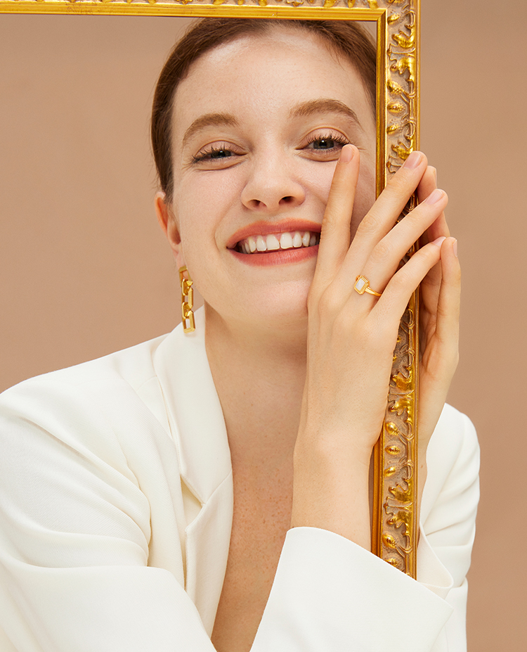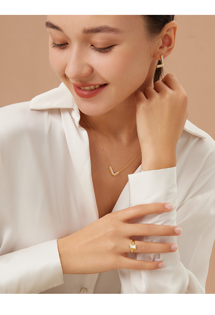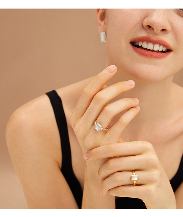 Neverfar畫框系列貝母戒指簡約時尚職場百搭小眾戒指女高級感