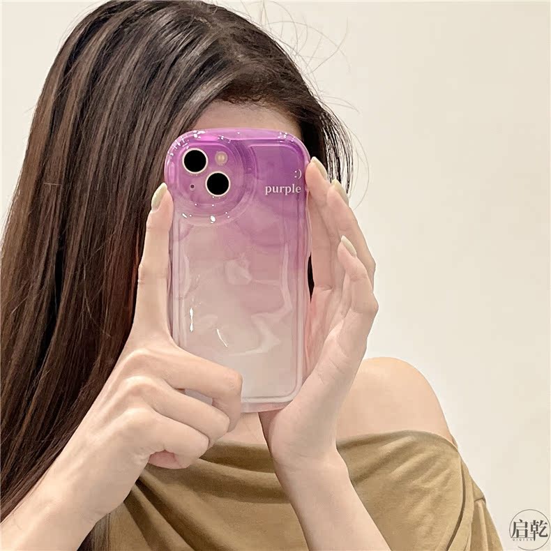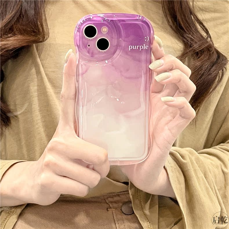 暈染紫色水波紋iphone14手機殼適用蘋果13promax波浪邊12/11個性創意14plus女新款硅膠保護套鏡頭全包防摔