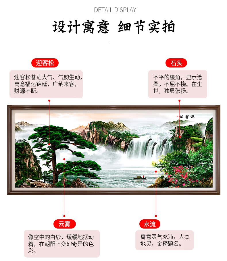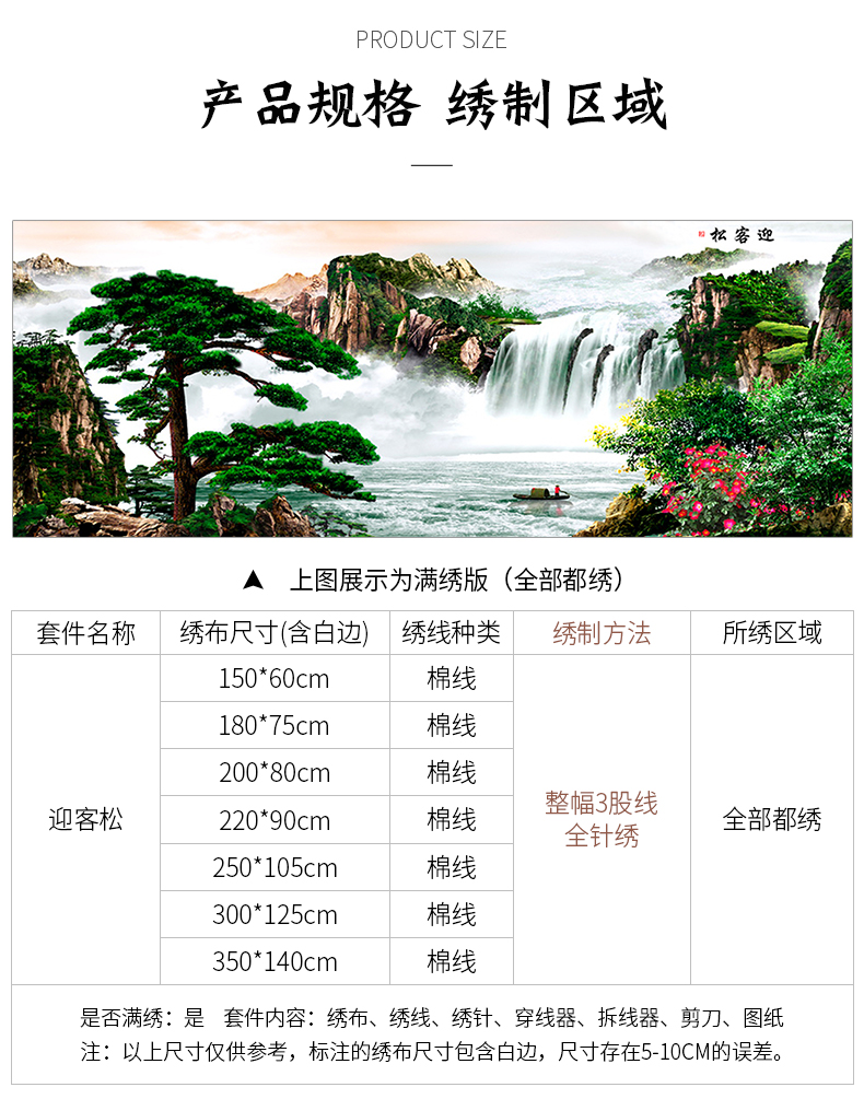 迎客松十字繡2022新款客廳山水畫風景大氣滿繡手工自繡2023線繡刺