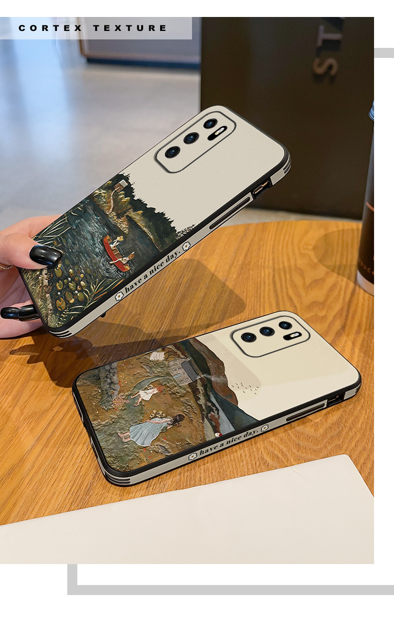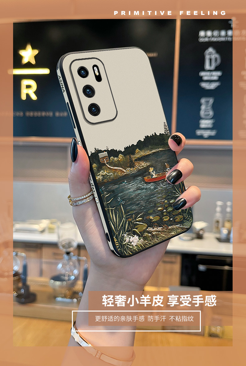 溪中小船華為p40pro手機殼新款p50pro高級感復古文藝p40女款全包p60pro防摔網紅p30皮紋保護套pro+可愛小眾