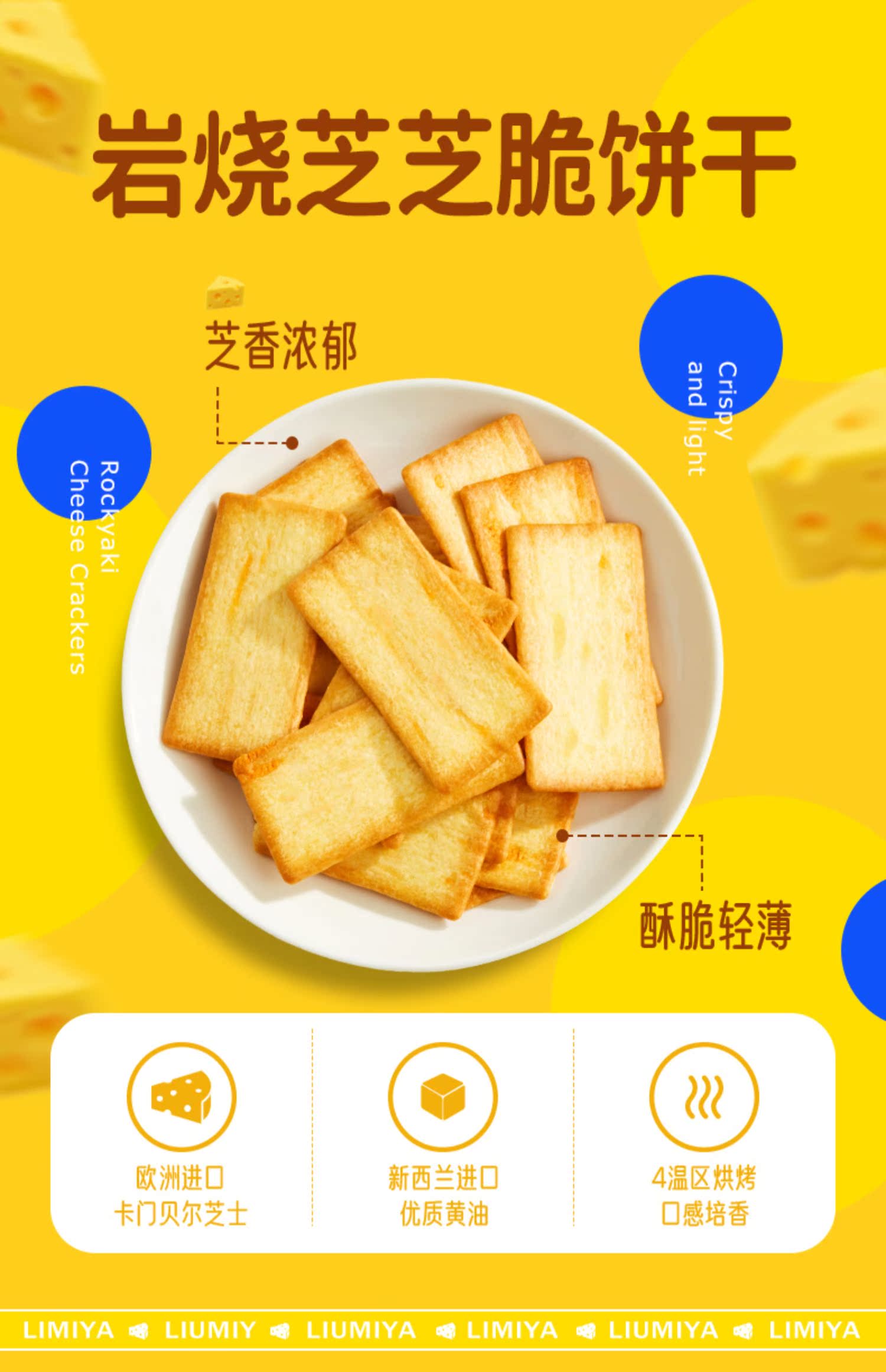 劉米雅巖燒芝士薄脆餅干120g*4盒咸味早餐脆餅零食小吃休閑食品