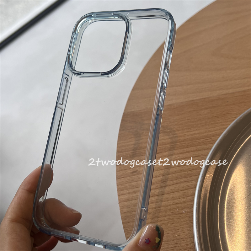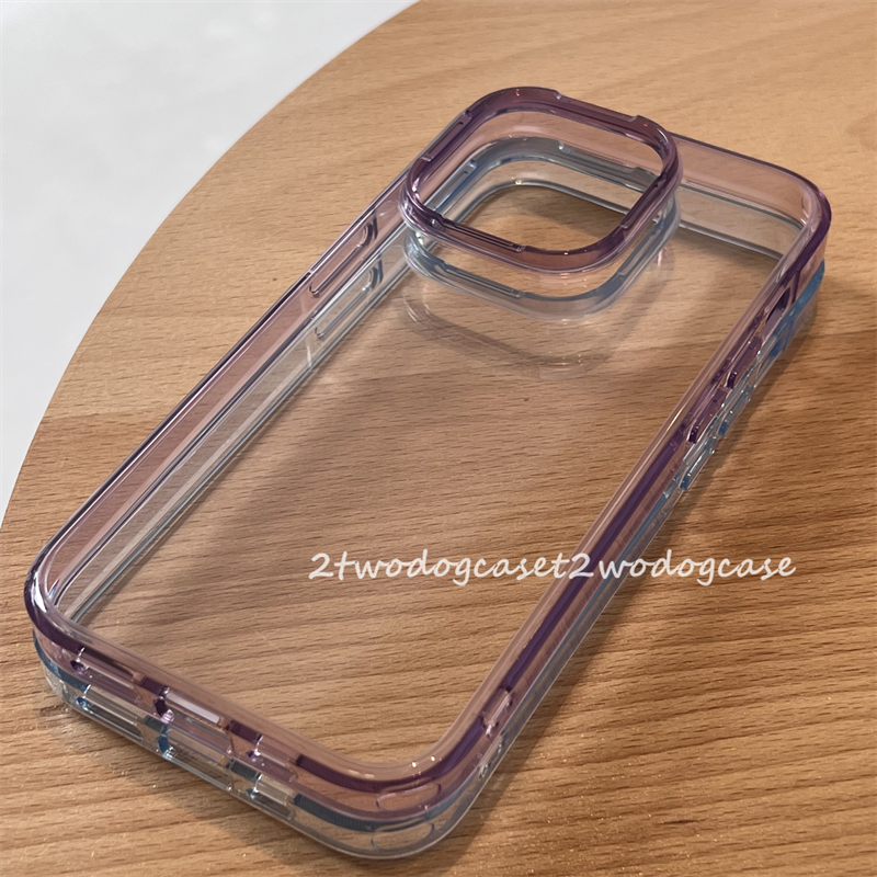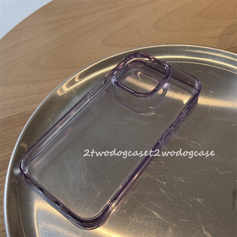 14貴氣紫色邊框透亮亞克力14Pro透明藍紫手機殼簡約情侶14promax