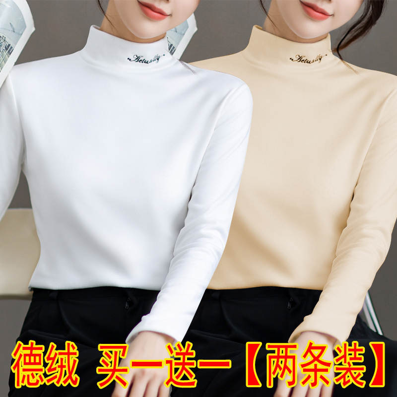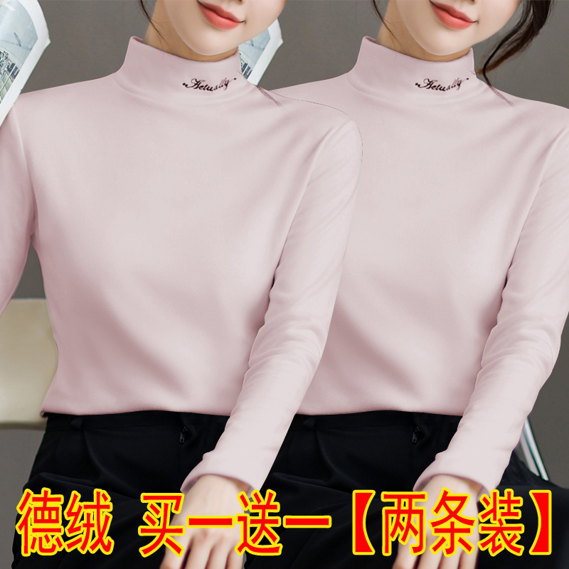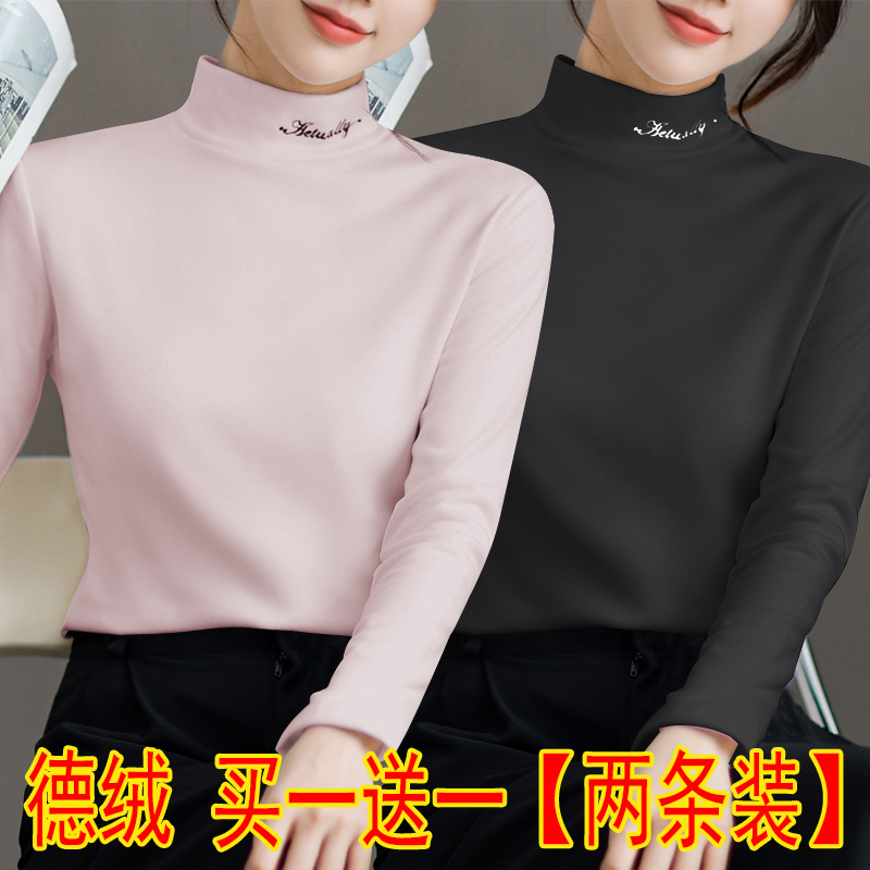 單/兩件裝 德絨繡花半高領秋冬保暖打底衫修身百搭長袖t恤女上衣