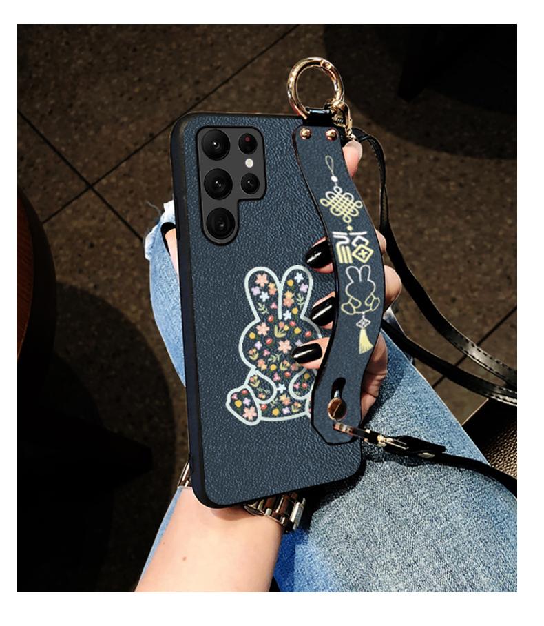 適用三星S23+手機殼S21plus保護套S22Ultra外殼S21FE皮質感S21腕帶款S22碎花兔斜挎掛繩女時尚潮時尚網紅5G