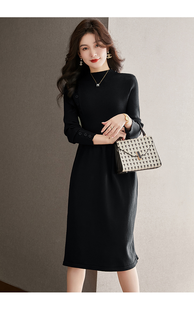 秋冬季配大衣羊絨毛衣裙女寬松A字內搭中長款打底針織羊毛連衣裙