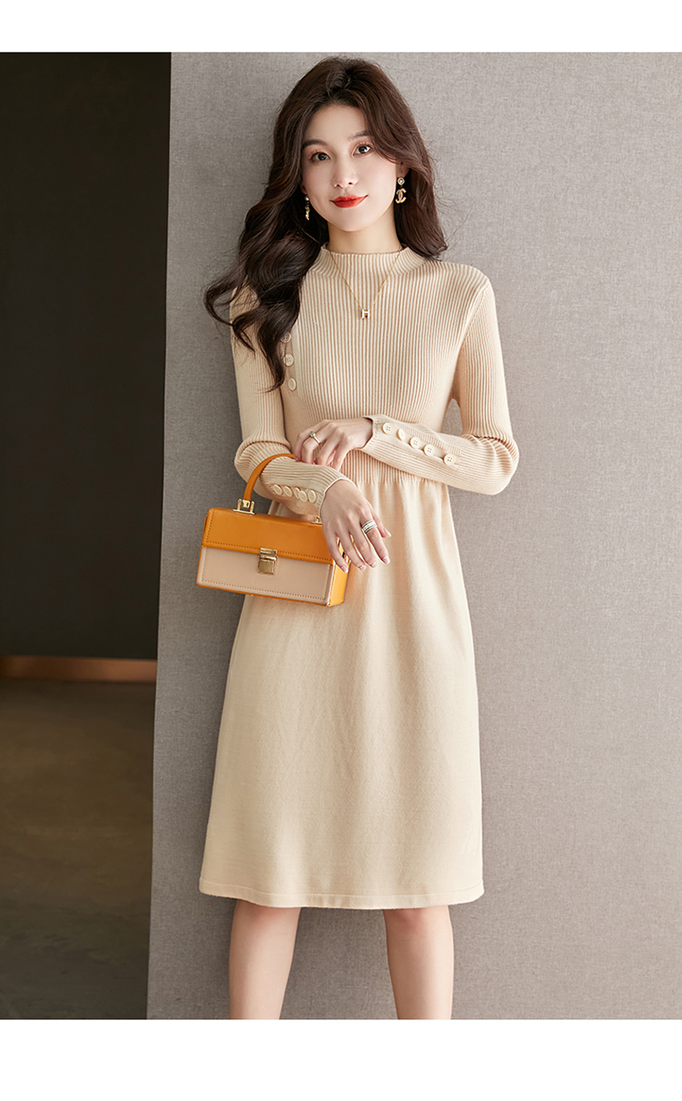 針織羊毛連衣裙女秋冬季新款配大衣毛衣半高領羊絨打底A字裙子潮