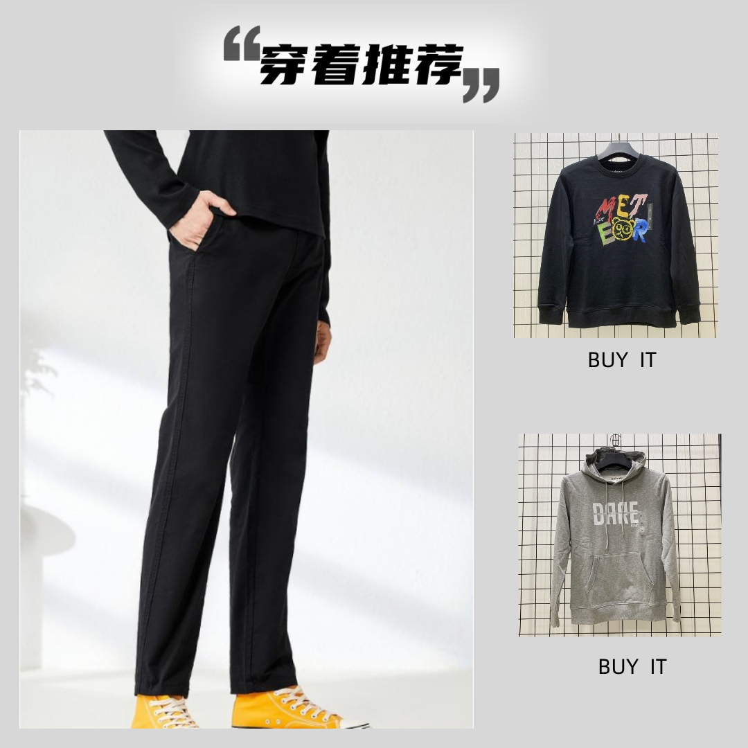 班尼路休閑褲男新款純棉長褲男潮流經典寬松直筒褲子男款商務舒適