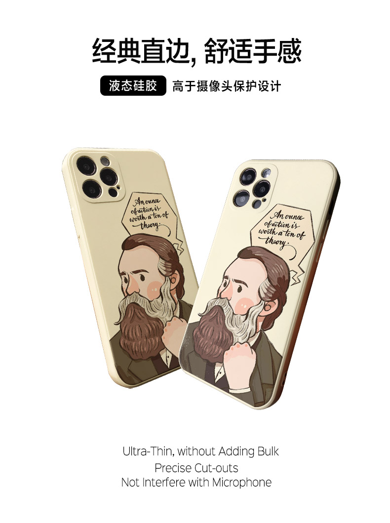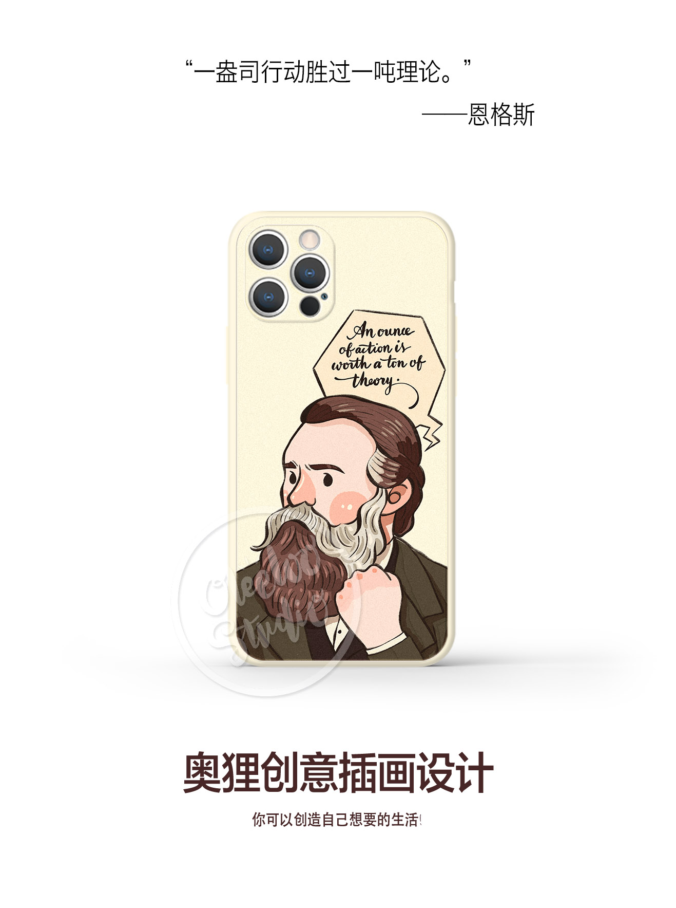 適用蘋果14手機殼iPhone12pro恩格斯人物原創設計懷舊經典人生哲思奮斗思考實踐勵志名言個性獨特魔方直邊