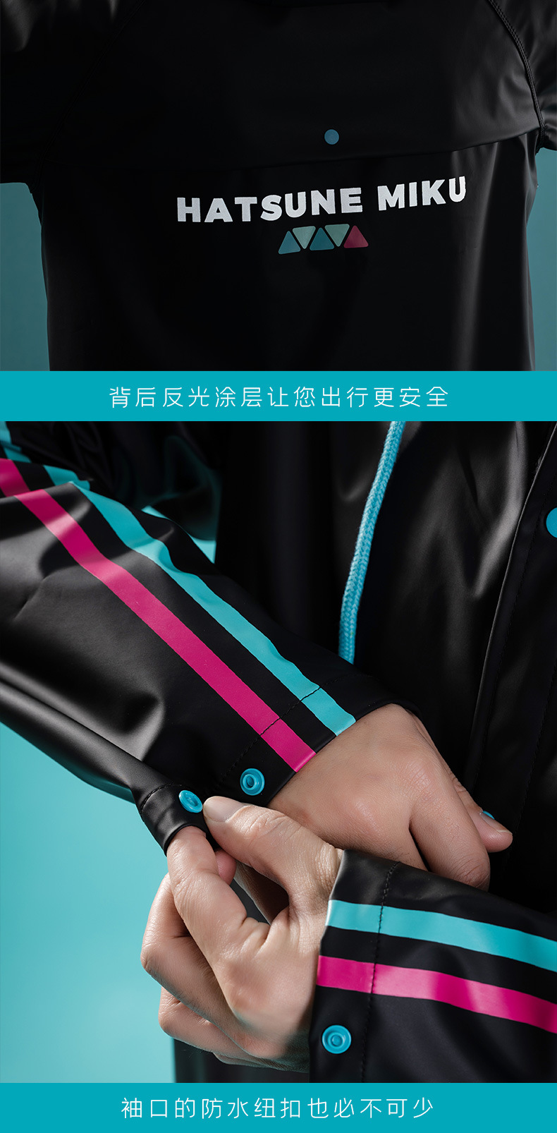 Moeyu初音未來霓虹款雨衣miku長款連帽外套雨衣 現貨包郵