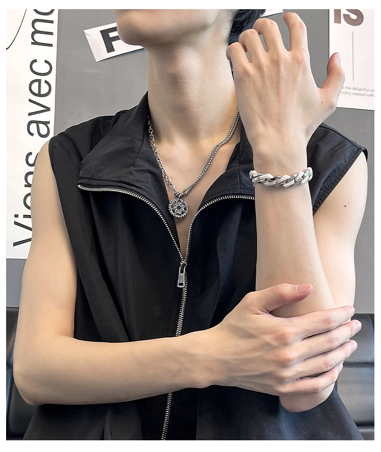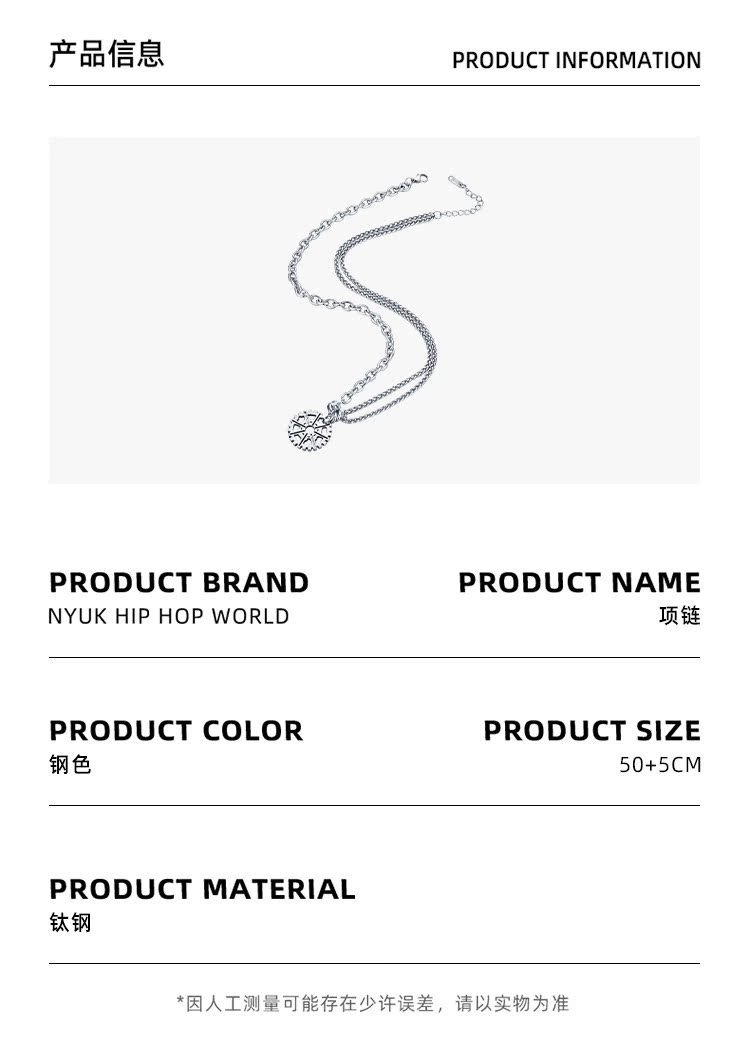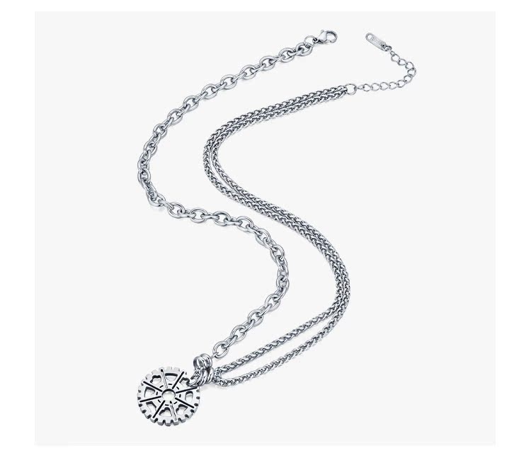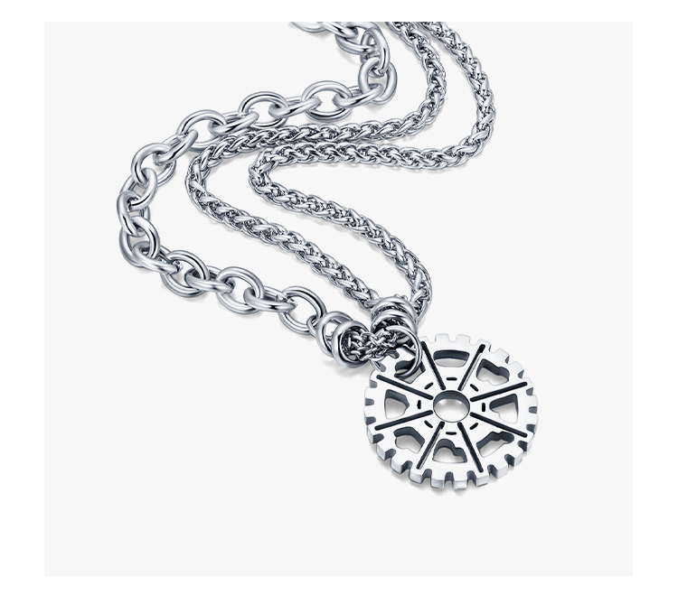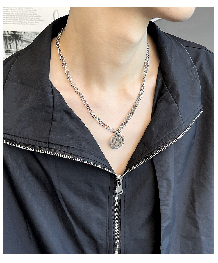 NYUK 嘻哈齒輪雙層疊戴鈦鋼項鏈 街頭潮人男女Hiphop吊墜飾品禮物