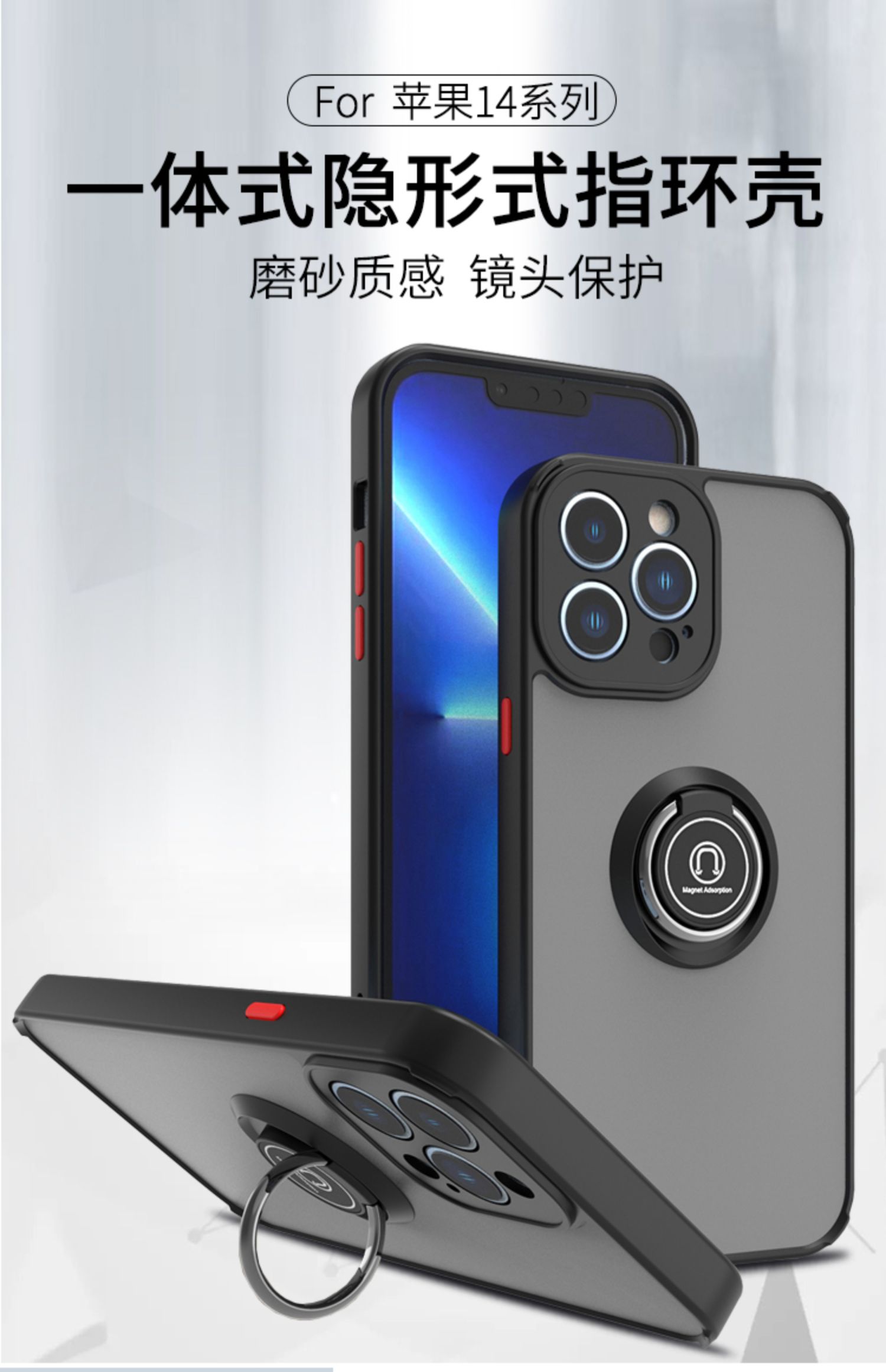 蘋果14手機殼指環扣iPhone15 Pro Max保護套磨砂13pro硅膠軟12promax新款11防摔超薄xr手環支架女男xsmax適用
