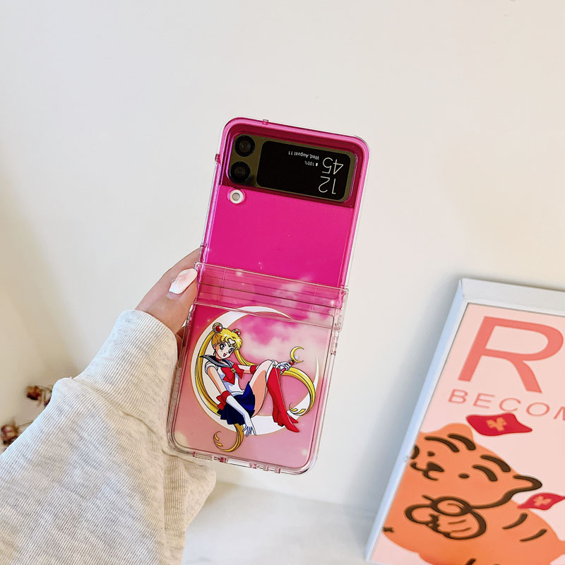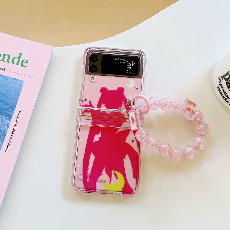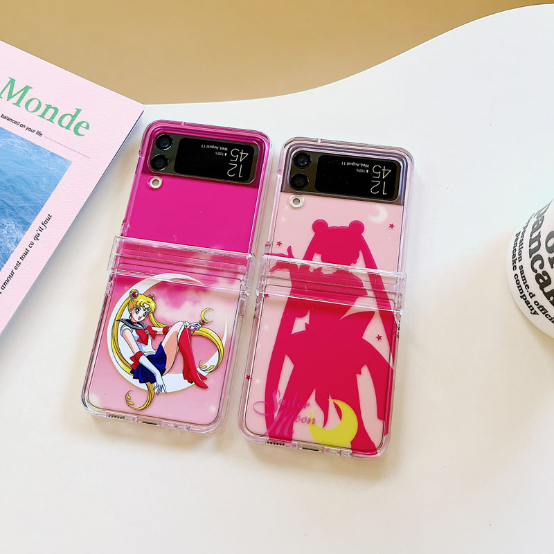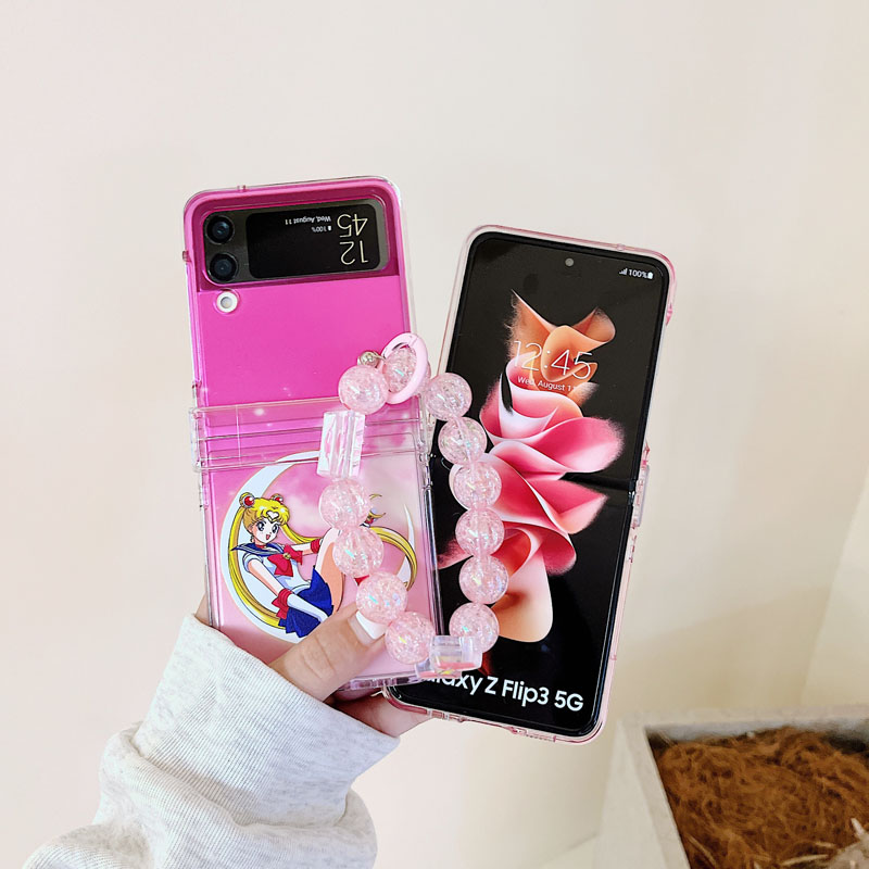 適用三星zflip5手機殼半透明粉美少女戰士鉸鏈全包硬殼防摔保護套zflip 3殼折疊屏flip4手提短手鏈繩可愛4四