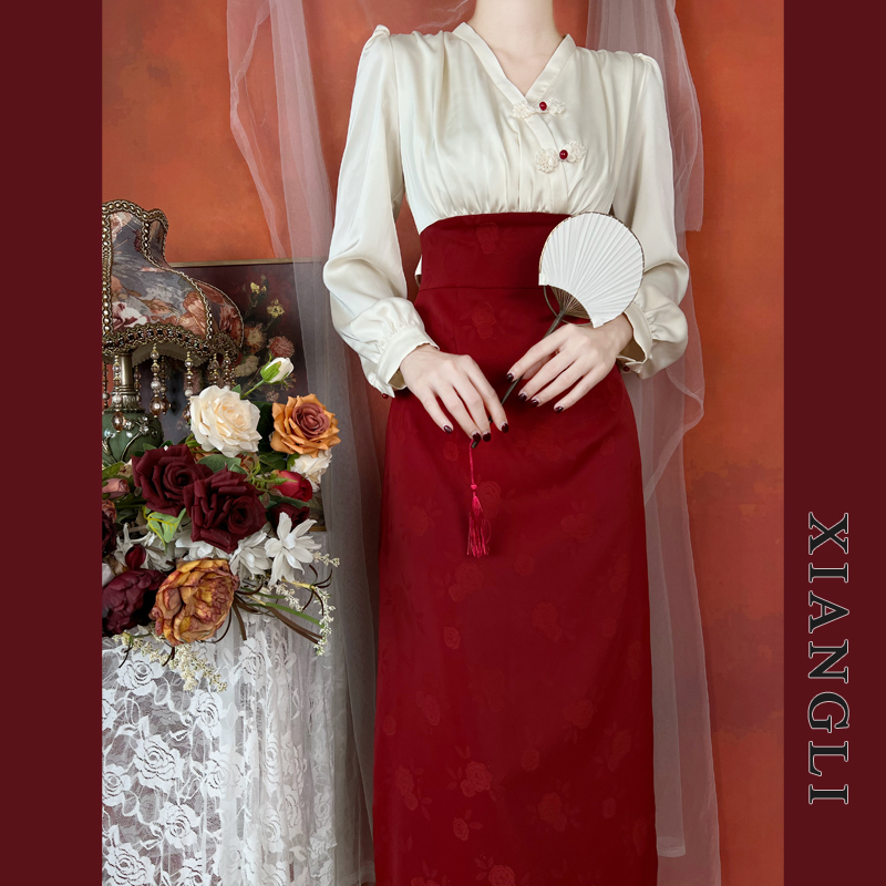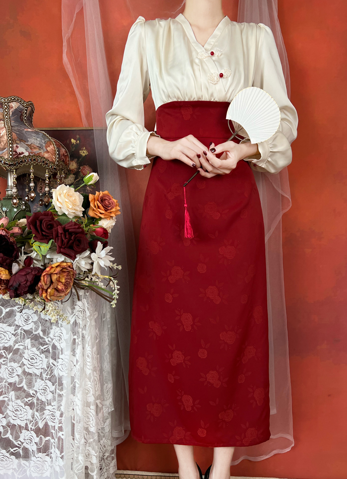 這款日常可穿的氣質杏色拼接新中式旗袍