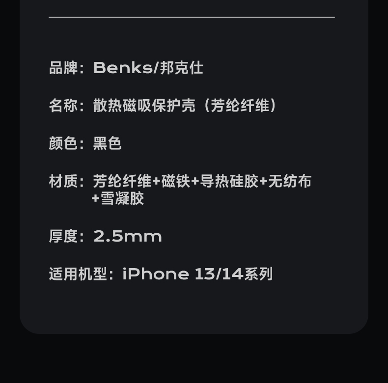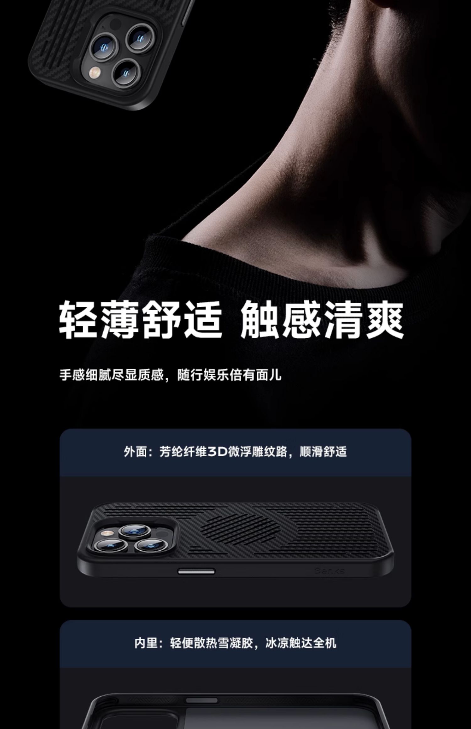 【散熱凱夫拉】Benks適用蘋果14promax凱夫拉冰甲散熱殼碳纖維防摔磁吸iPhone14Plus芳綸纖維新款超薄magsafe