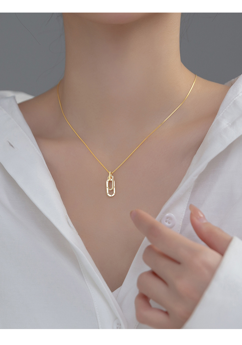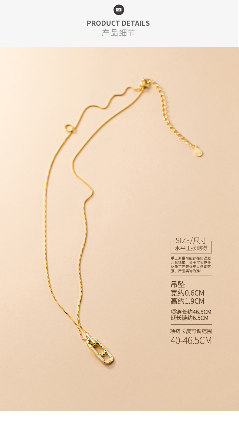 幾何條環相扣吊墜項鏈925純銀鍍真金微鑲鋯石18K金鎖骨鏈男女生日