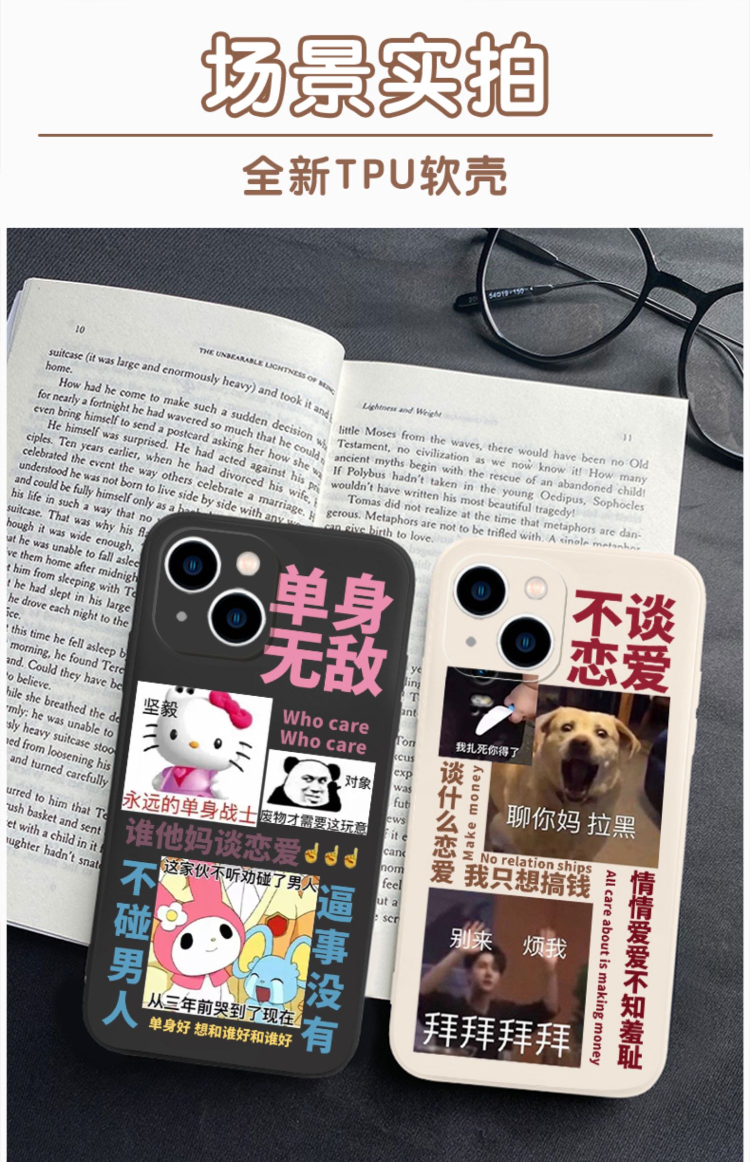 不談戀愛手機殼蘋果14華為mate40表情包iPhone13Promax單身OPPO小米11惡搞vivo適用12拒絕p40想30戀愛腦x搞怪