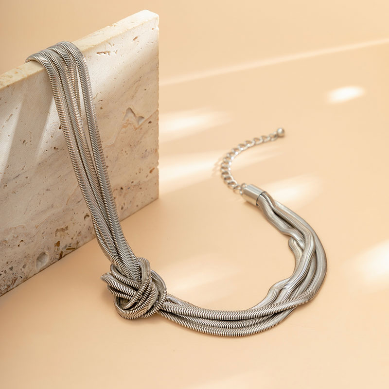 多層打結扁蛇鏈項鏈女歐美新款潮個性小眾設計鎖骨鏈舞臺表演配飾