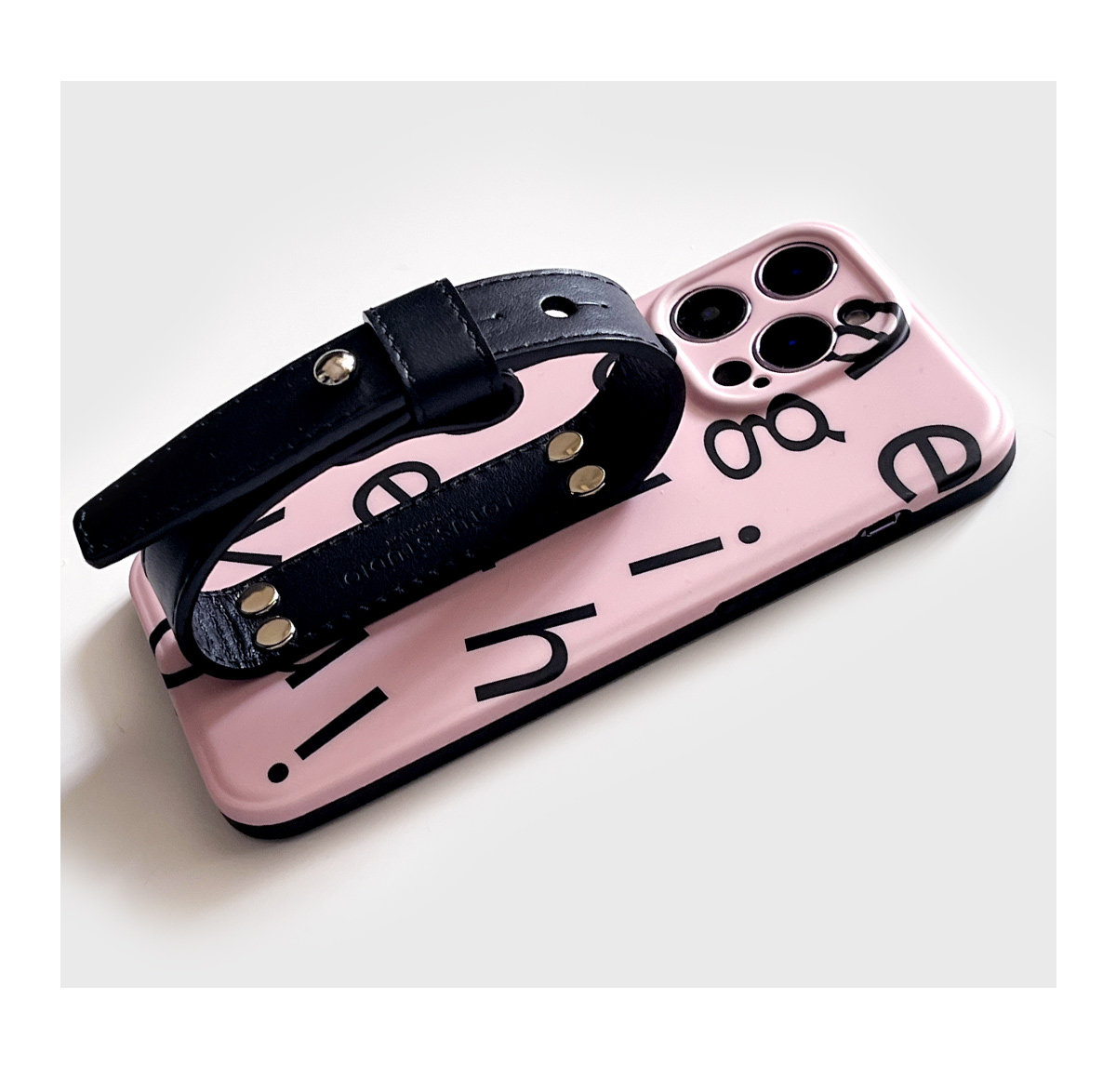ins愛心印花豆豆釘皮質腕帶手機殼