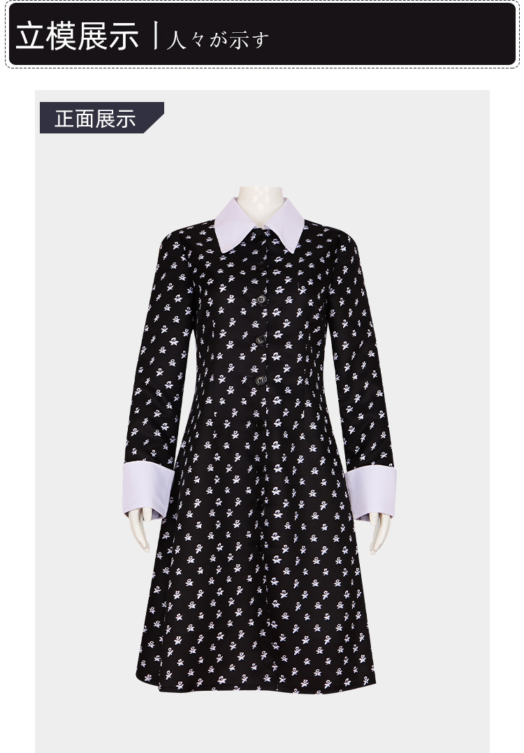 萬圣節德拉克斯亞當斯一家cos服黑色長袖連衣裙星期三cosplay女裝