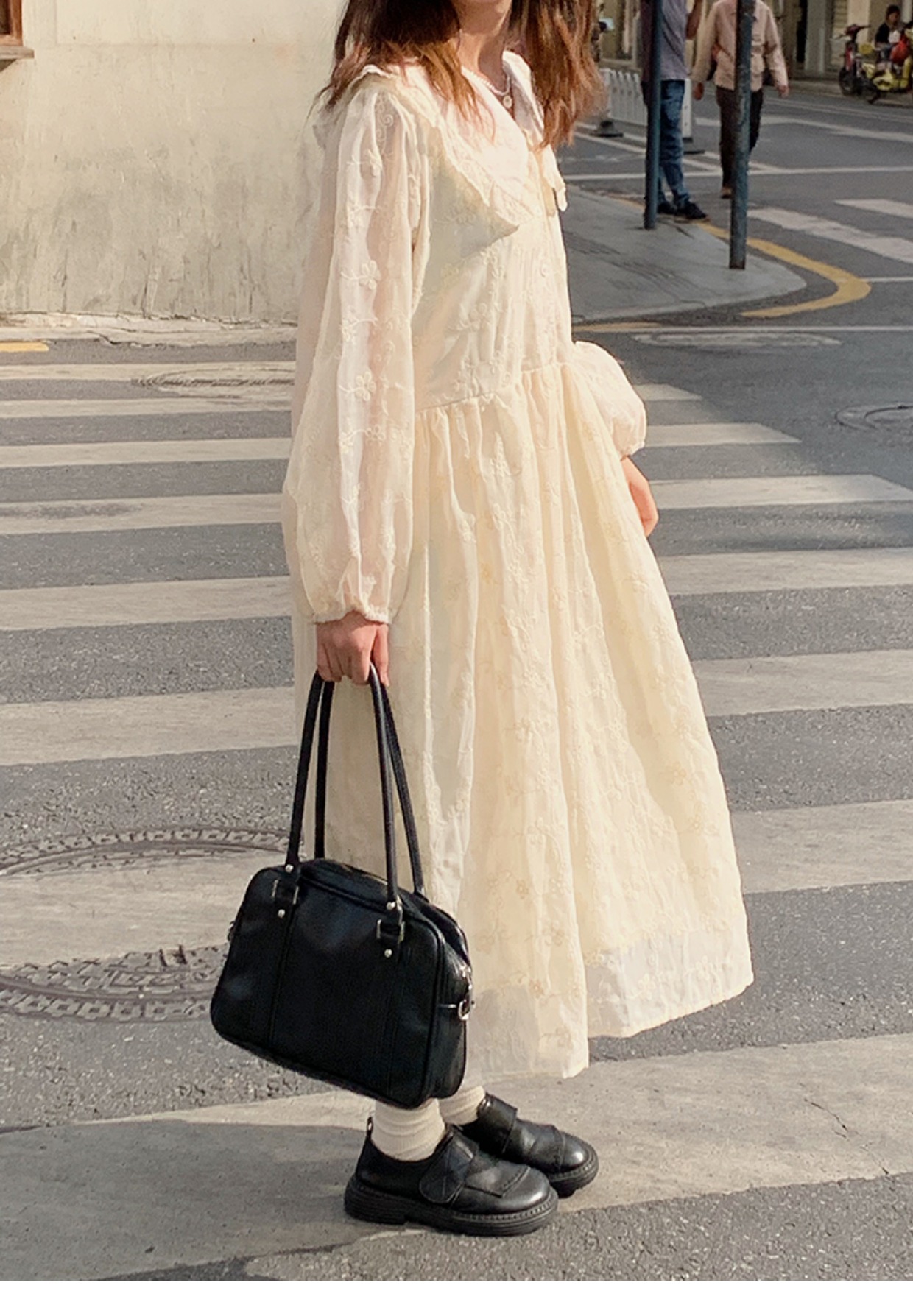 踏進銀河日系甜美白色長袖連衣裙
