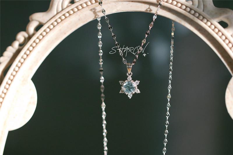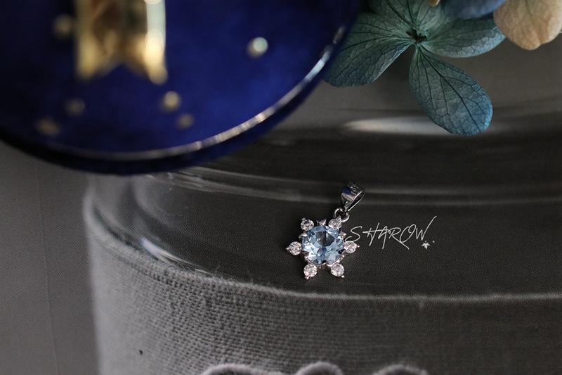 SHAROW「雪花六芒星」原創人海星芒藍托帕石925銀吊墜項鏈女法式