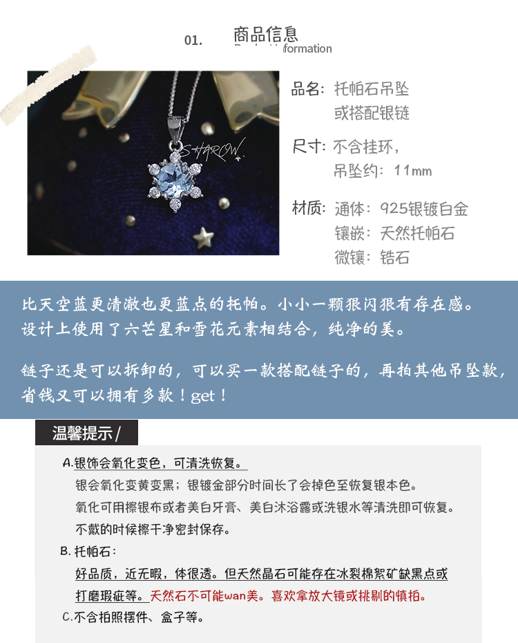88¥ CZ0001 fPVWWZr3HKY¥ https://m.tb.cn/h.5T9upDW SHAROW「雪花六芒星」原創人海星芒藍托帕石925銀吊墜項鏈女法式 --------------------- SHAROW「雪花六芒星」原創人海星芒藍托帕石925銀吊墜項鏈女法式 --------------------- 【原售價】114.5元 【優惠券】5元 【券后價】109.5元。