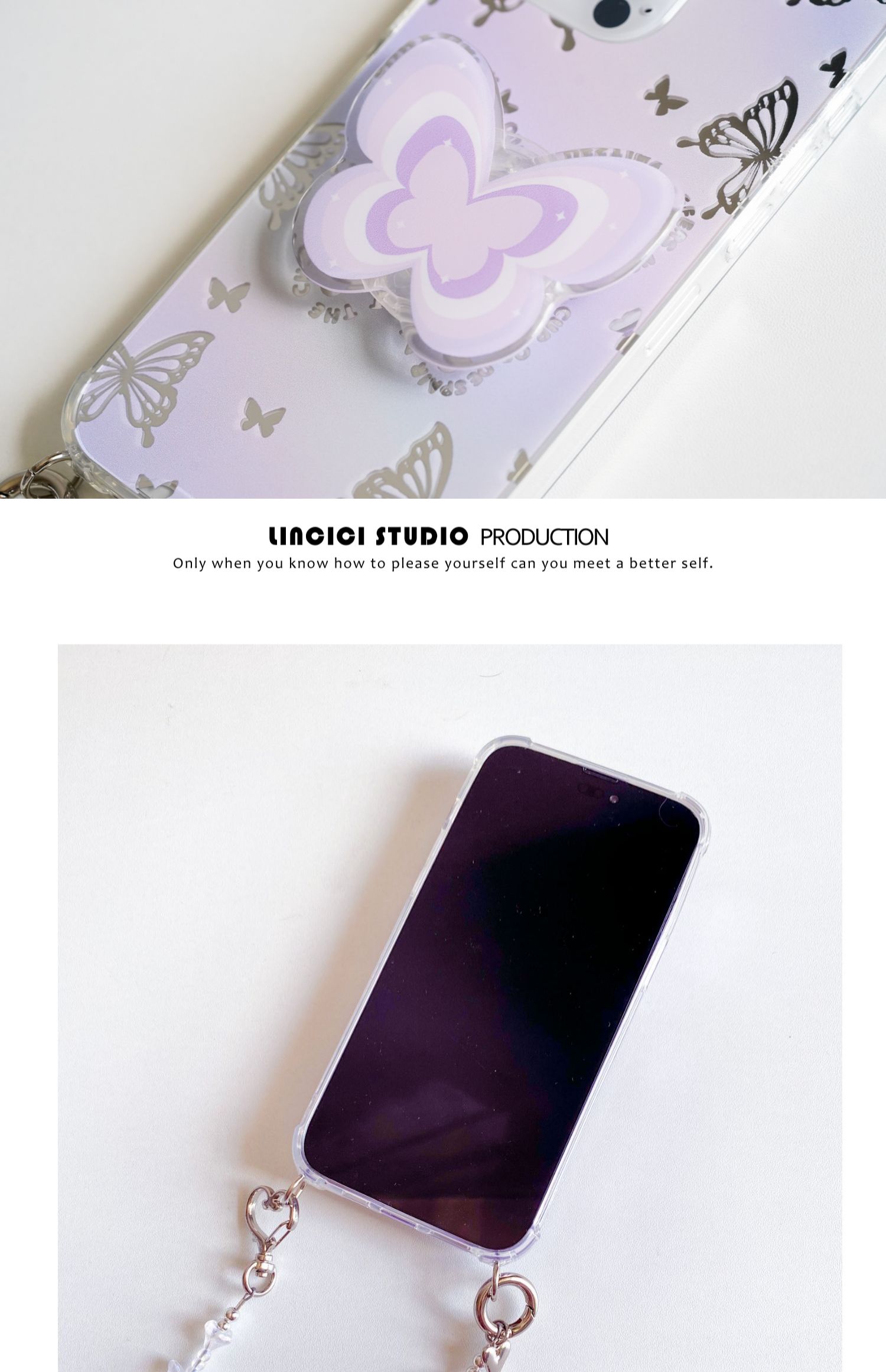 普羅旺斯紫蝴蝶支架手提鏈條適用蘋果iPhone14 13promax手機殼