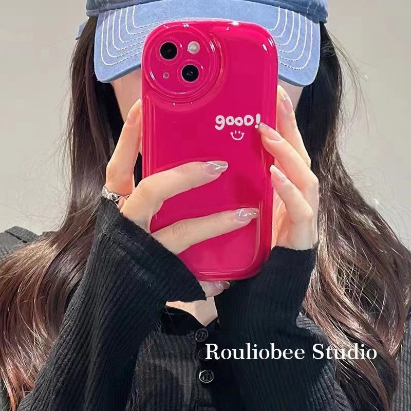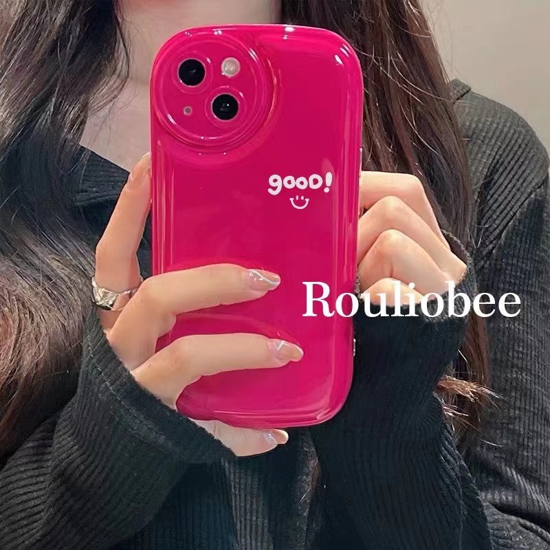 玫紅色笑臉適用蘋果13promax手機殼iPhone13新款14簡約11時尚xsmax小紅書爆款xr高級感x氣墊12防摔套女日韓風