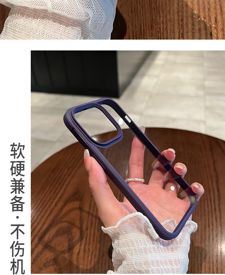 【高品質不發黃】暗紫色透明軟邊適用于iPhone14手機殼14plus防滑新款蘋果14promax高級14全包保護套防摔簡約