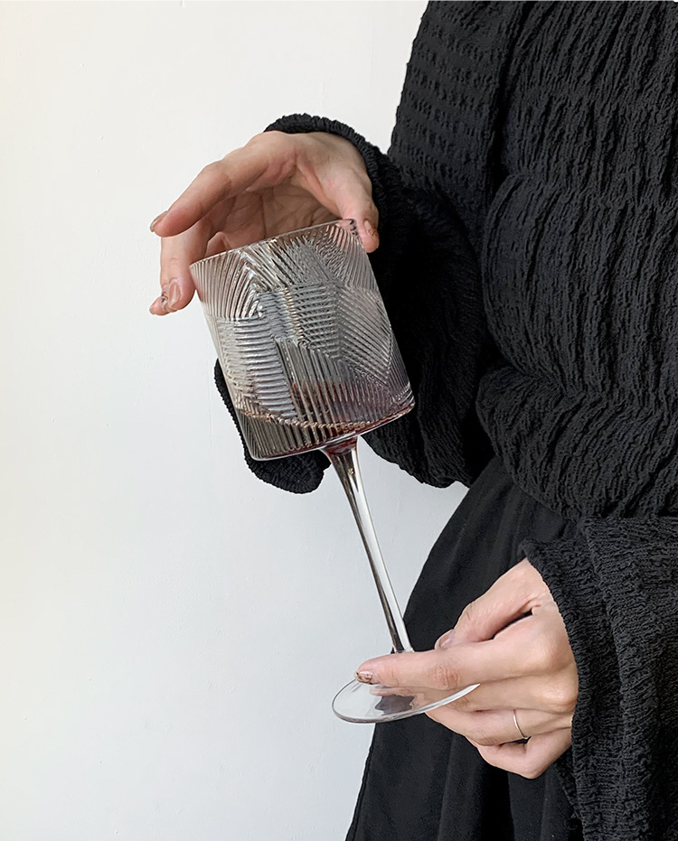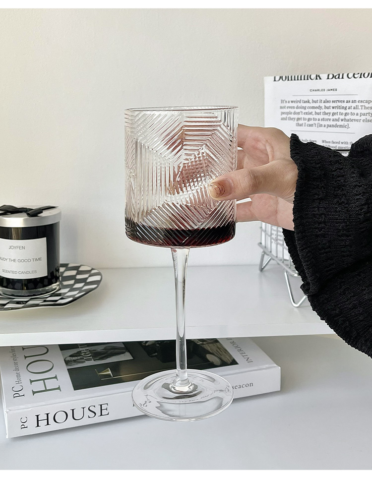 法式復古豎紋玻璃高腳杯創意紅酒杯香檳杯家用果汁杯杯子葡萄酒杯