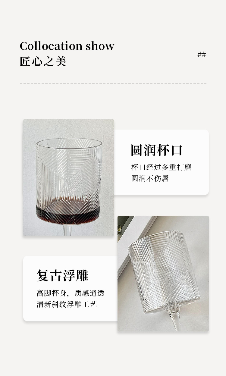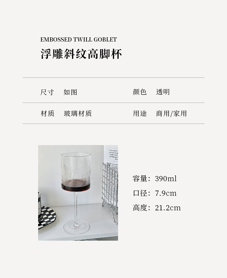 高腳紅酒杯ins風復古浮雕玻璃水杯果汁葡萄酒杯高級感起泡酒杯