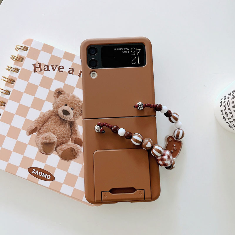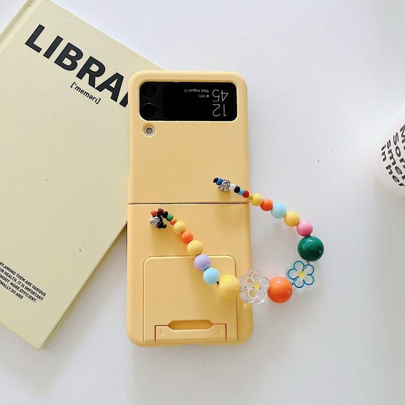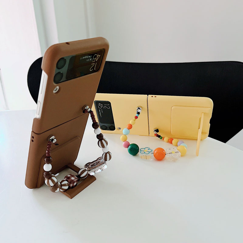 適用三星zflip5手機殼純色磨砂親膚感自帶支架硬殼保護套三代簡約flip4手機殼折疊屏4四INS可愛短手鏈手提繩