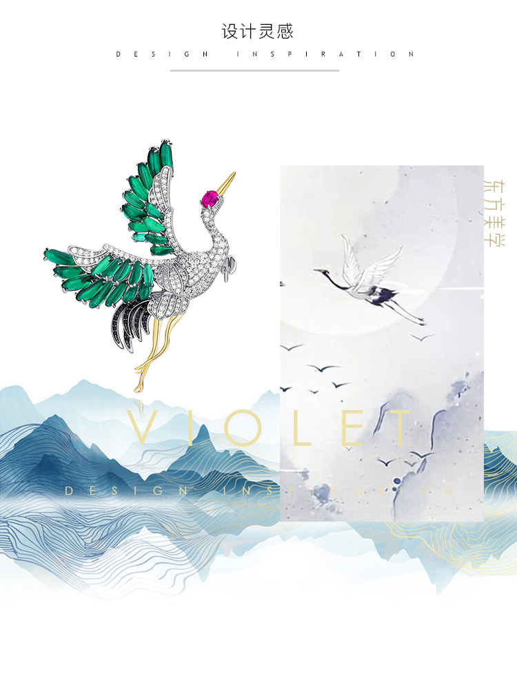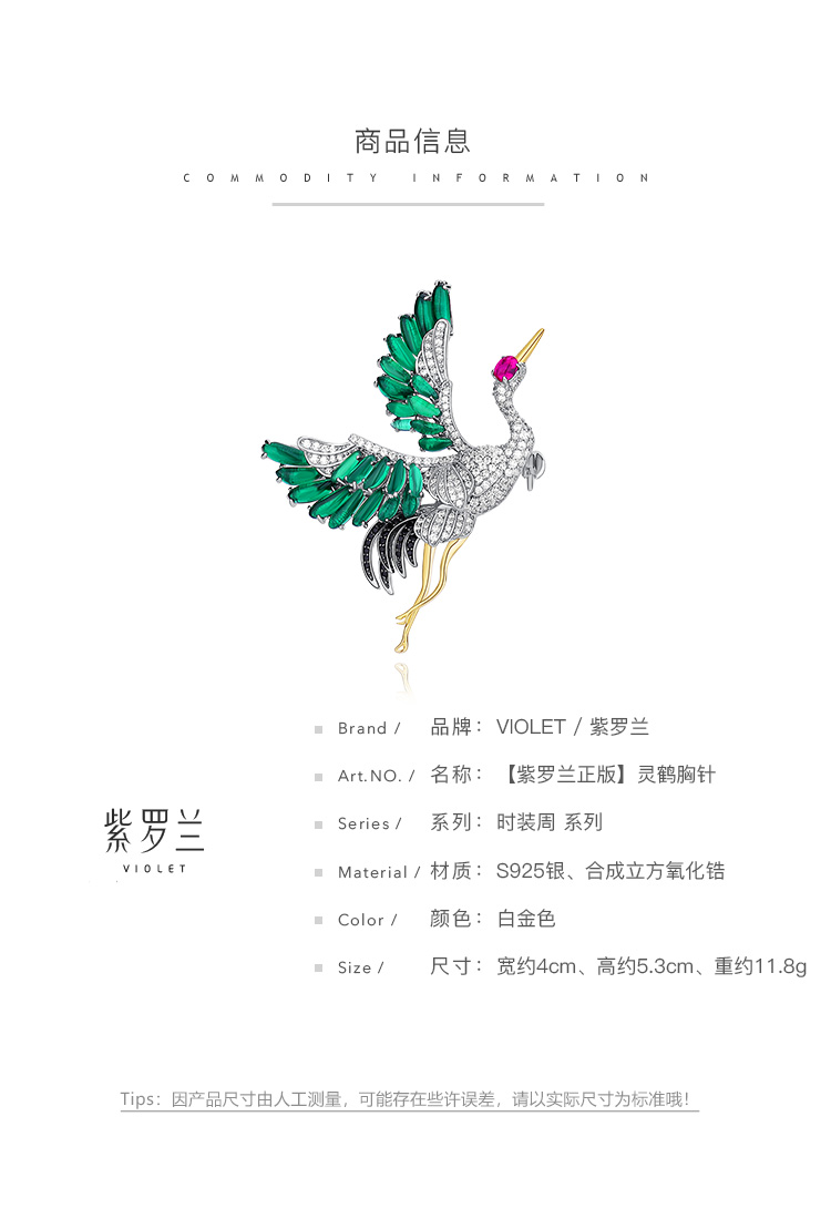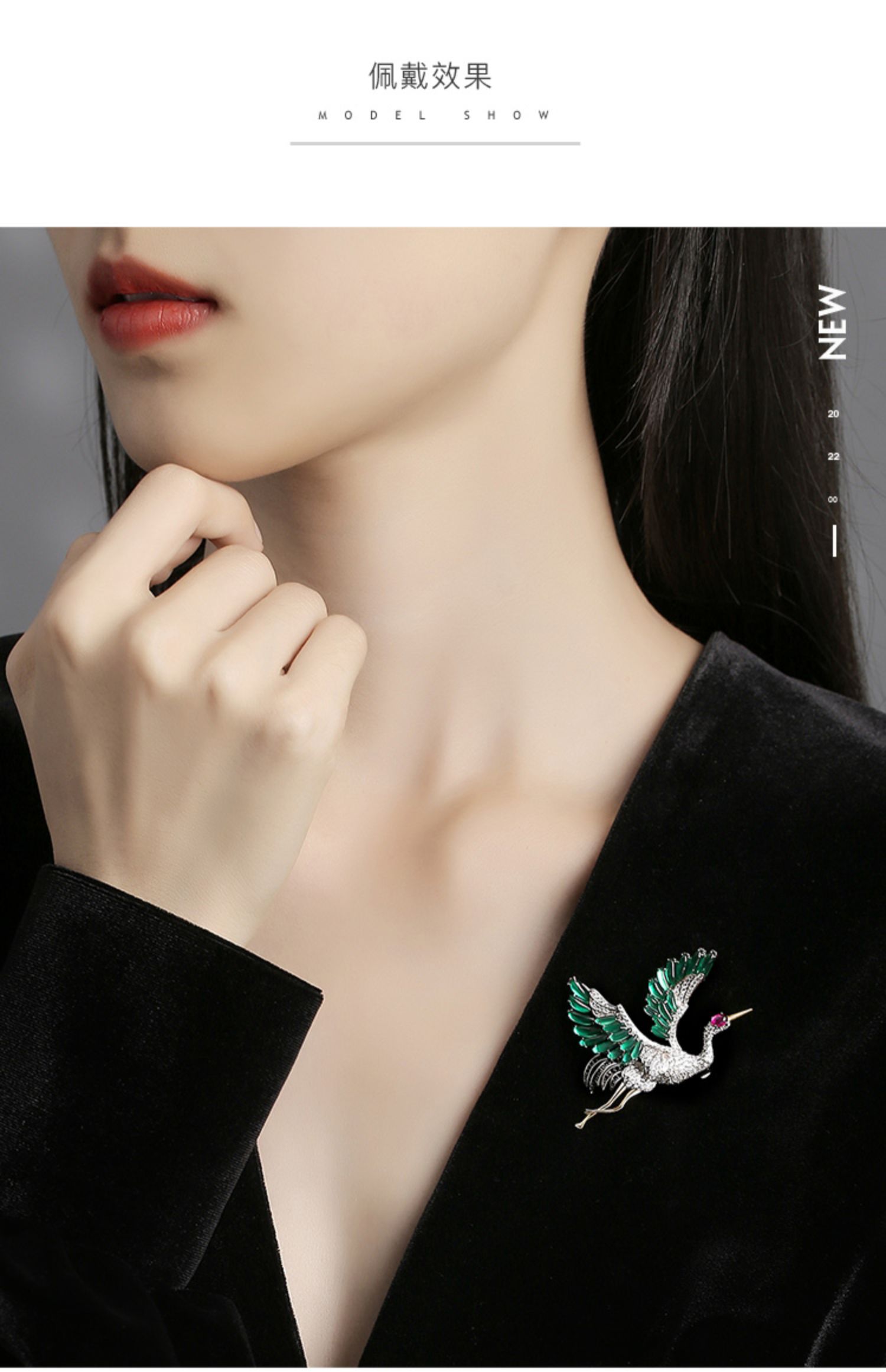 【紫羅蘭正版】靈鶴S925純銀胸針高檔女仙鶴古風胸花2022年新款潮
