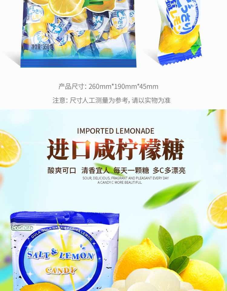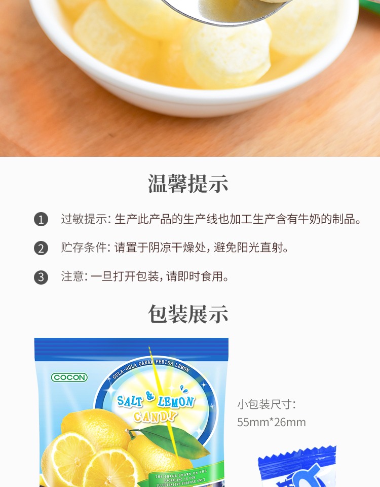 馬來西亞進口cocon可康咸檸檬糖運動泡水補充鹽分檸檬水果汁糖1斤
