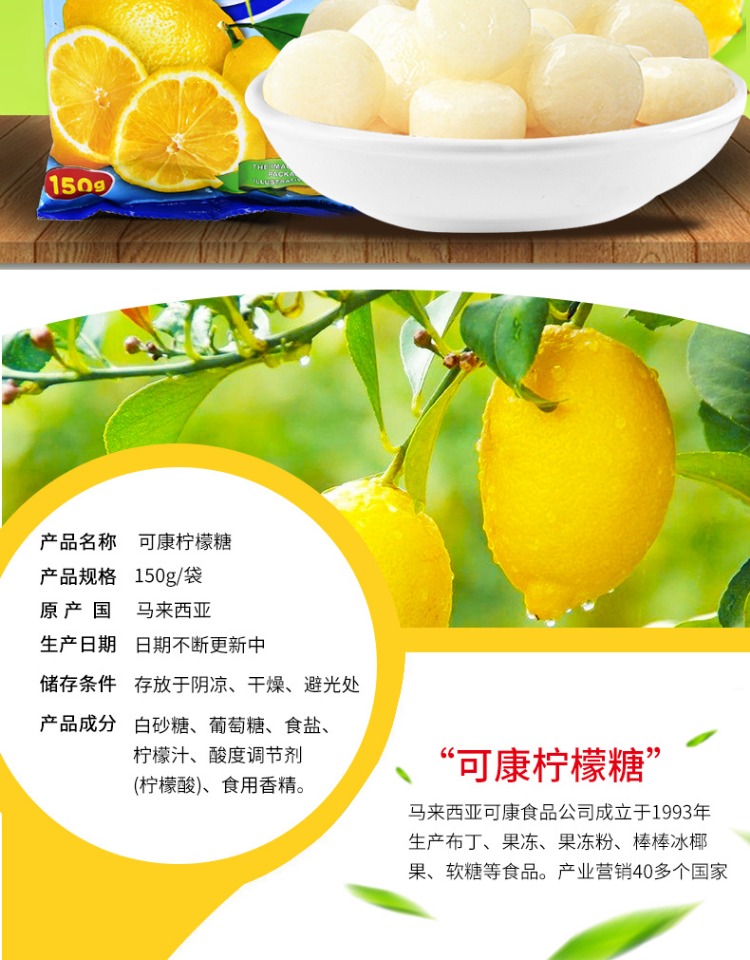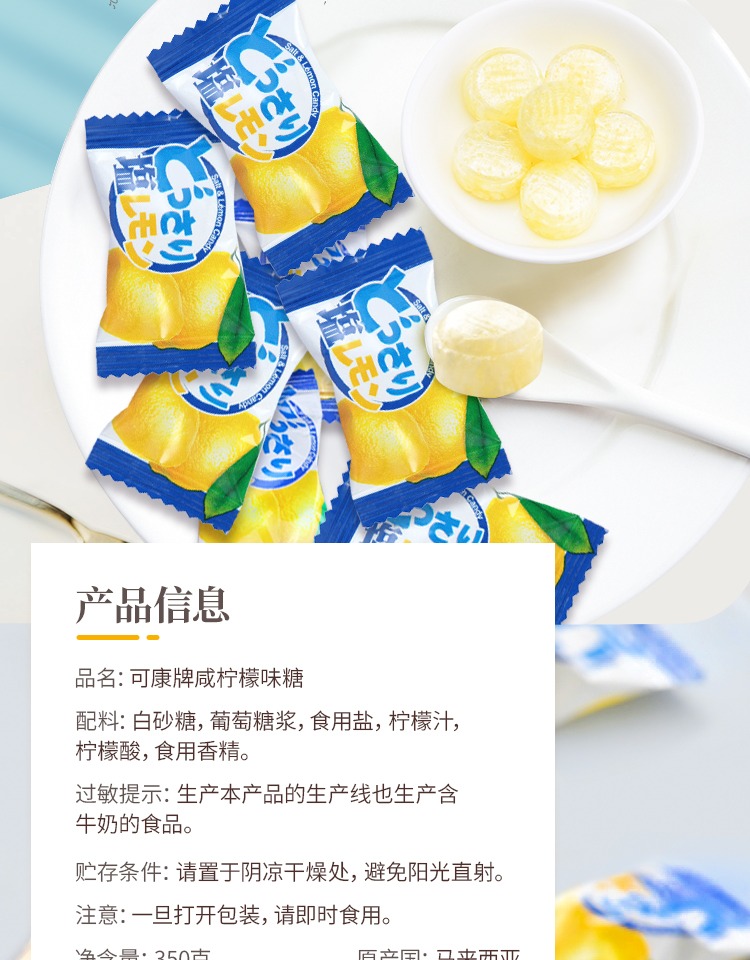 可康馬來西亞進口咸檸檬味海鹽糖果150g夏天補充鹽分辦公休閑零食