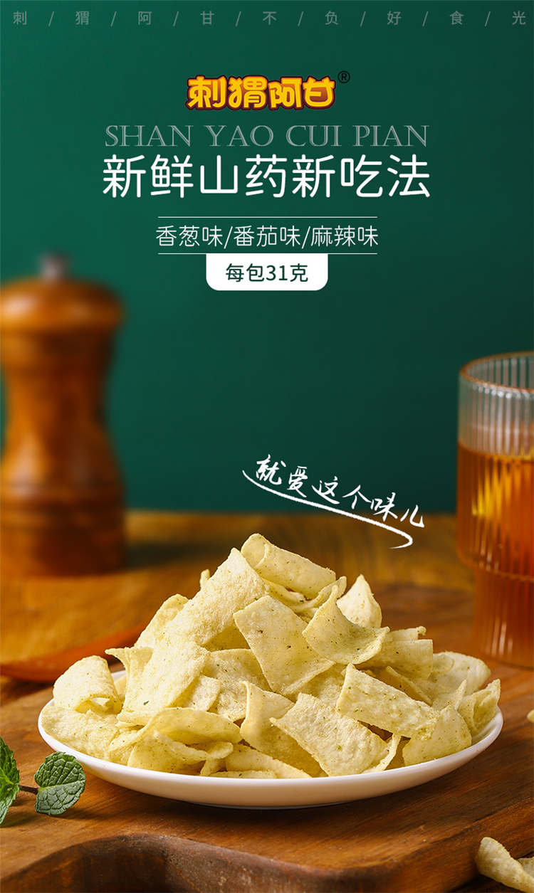 刺猬阿甘山藥脆片31gx10袋薯片薯條休閑小零食大禮包官方旗艦店