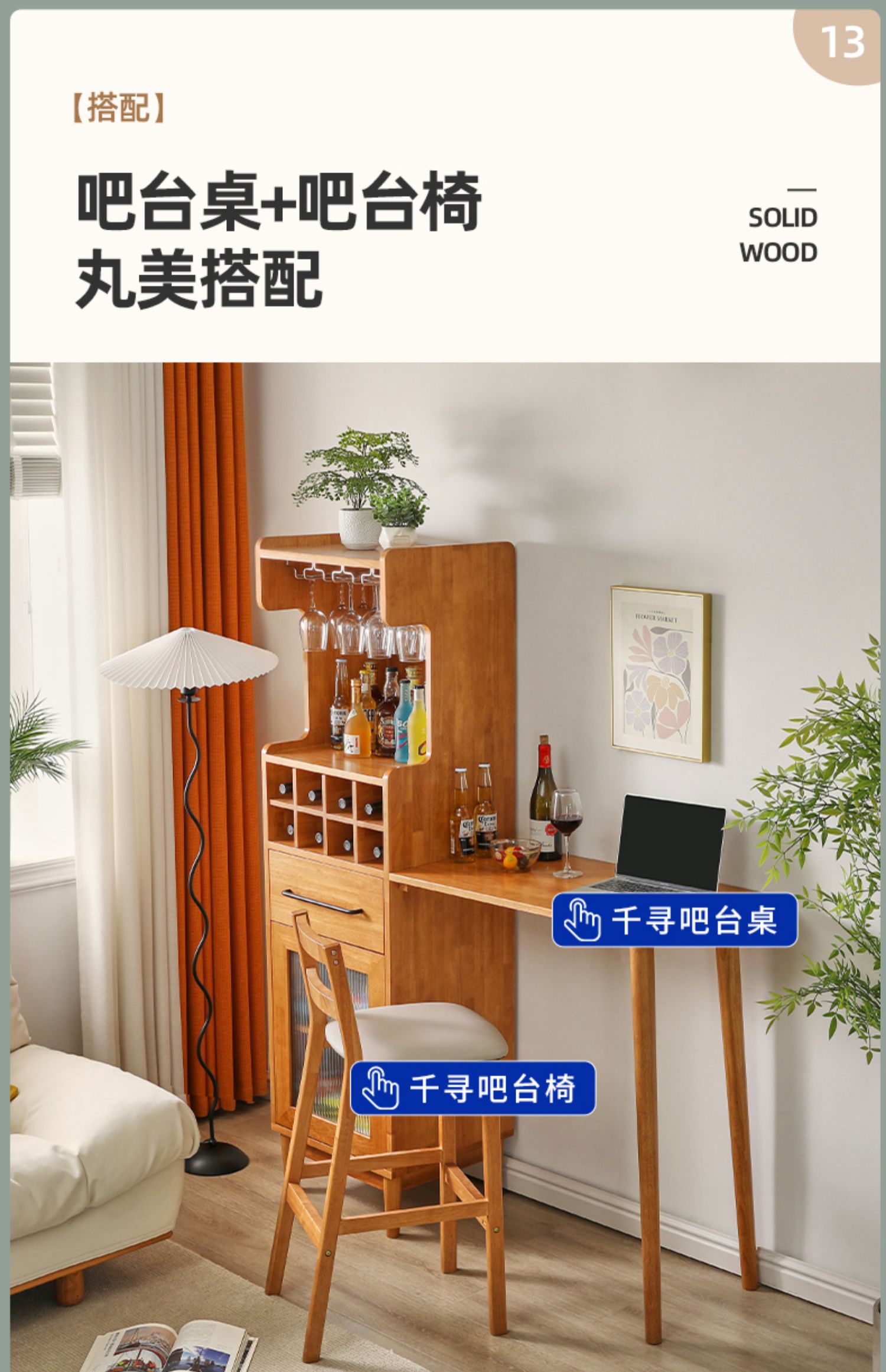 志光日式巖板吧臺餐邊柜隔斷一體客廳實木伸縮餐桌小戶型酒柜儲物