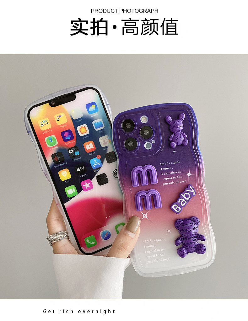 適用于VIVO Y77 5G手機殼高級感V2219A日韓網紅viviy77立體vlvoy77硅膠可愛少女viovy77波浪公仔漸變色viv0潮