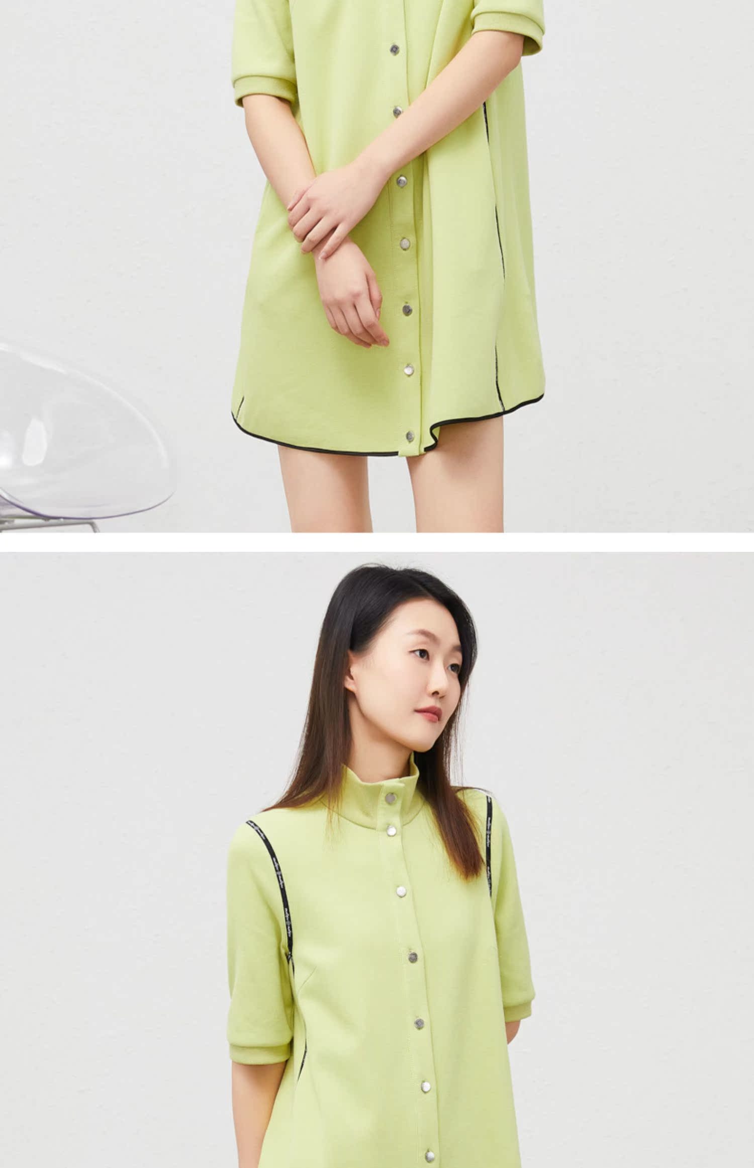 OUDIFU品牌2023春夏季新款POLO領寬松休閑短袖直筒衛高級感連衣裙