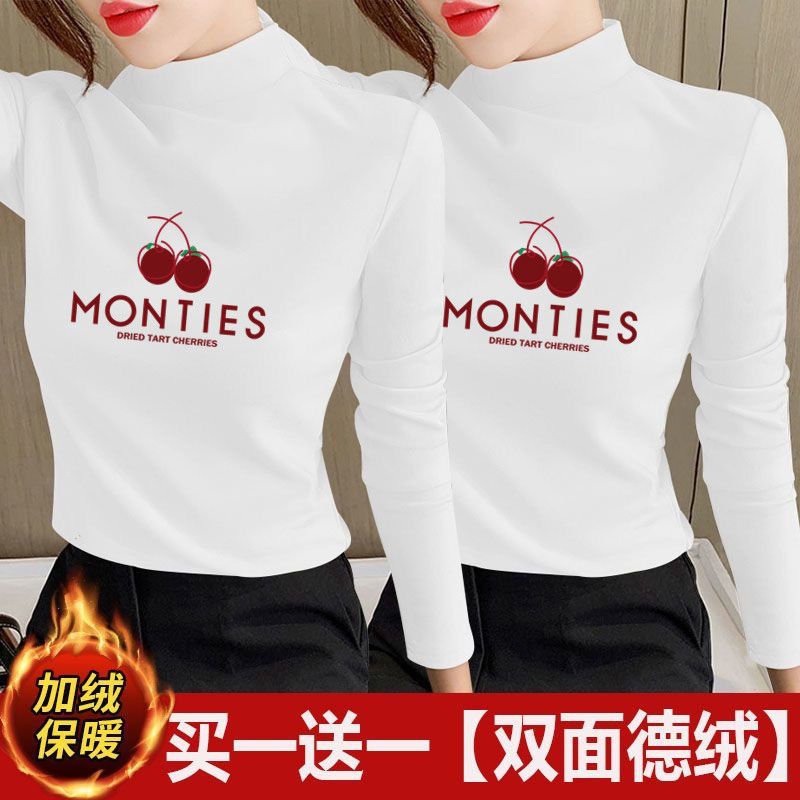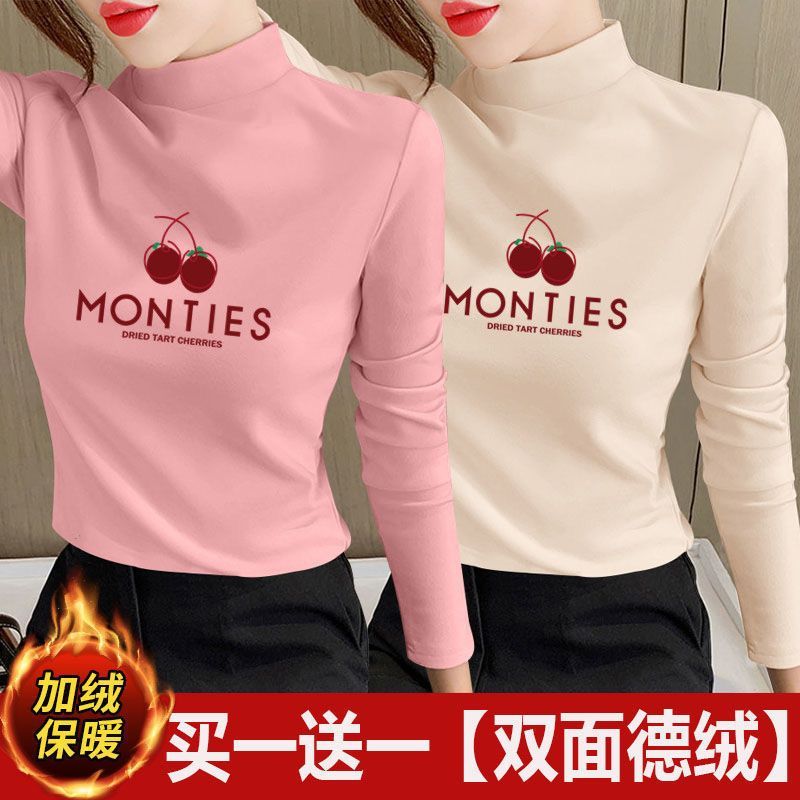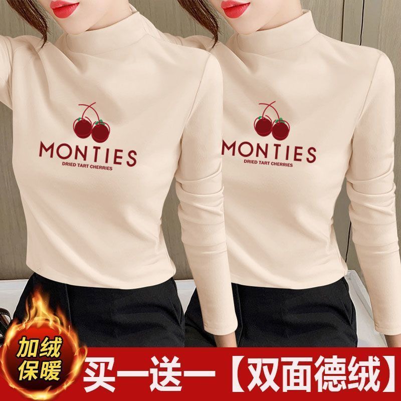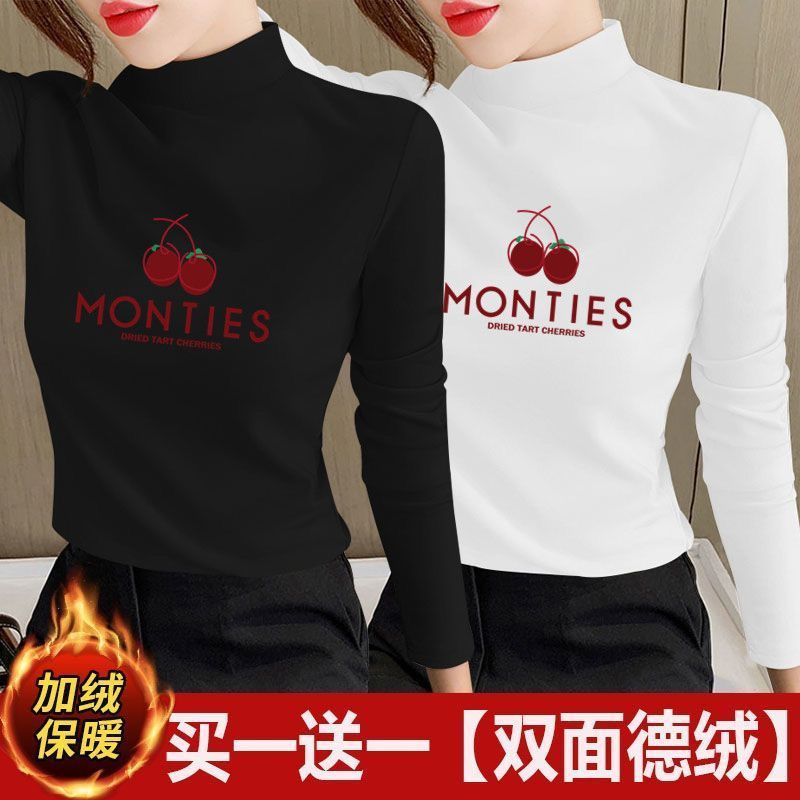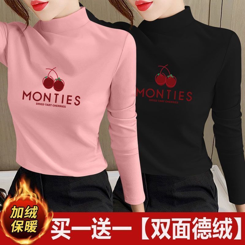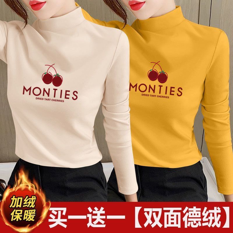 單/兩件裝加厚加絨德絨半高領秋冬季保暖打底衫修身百搭長袖t恤女