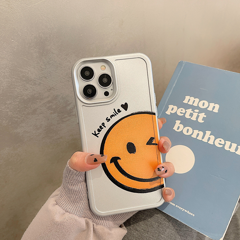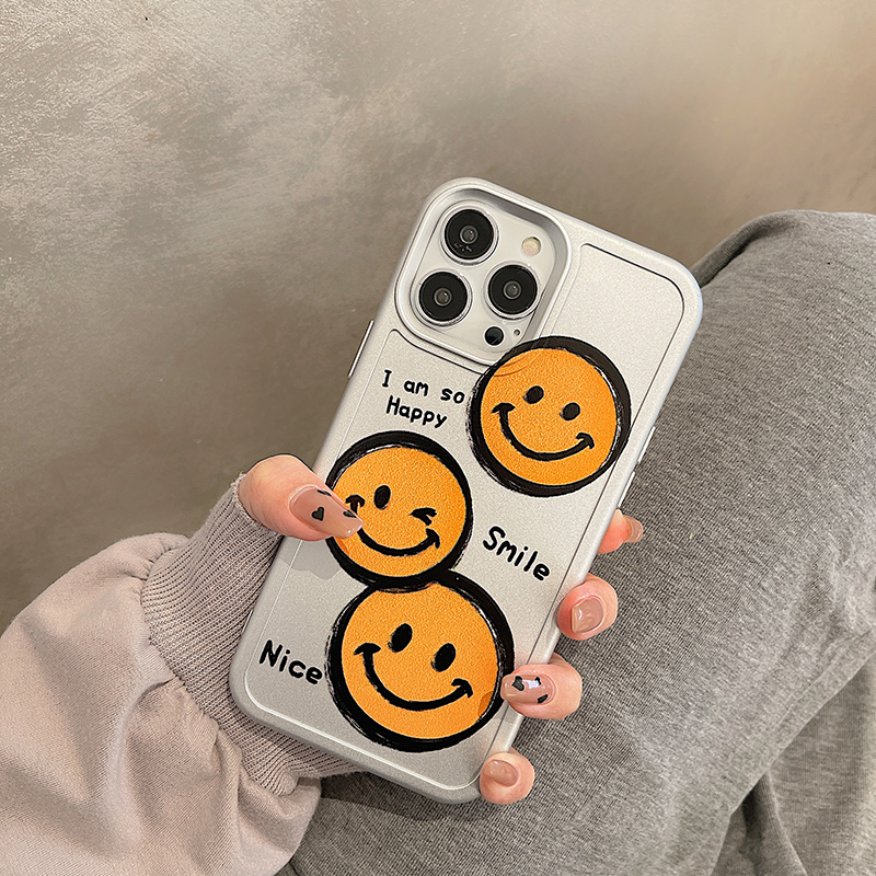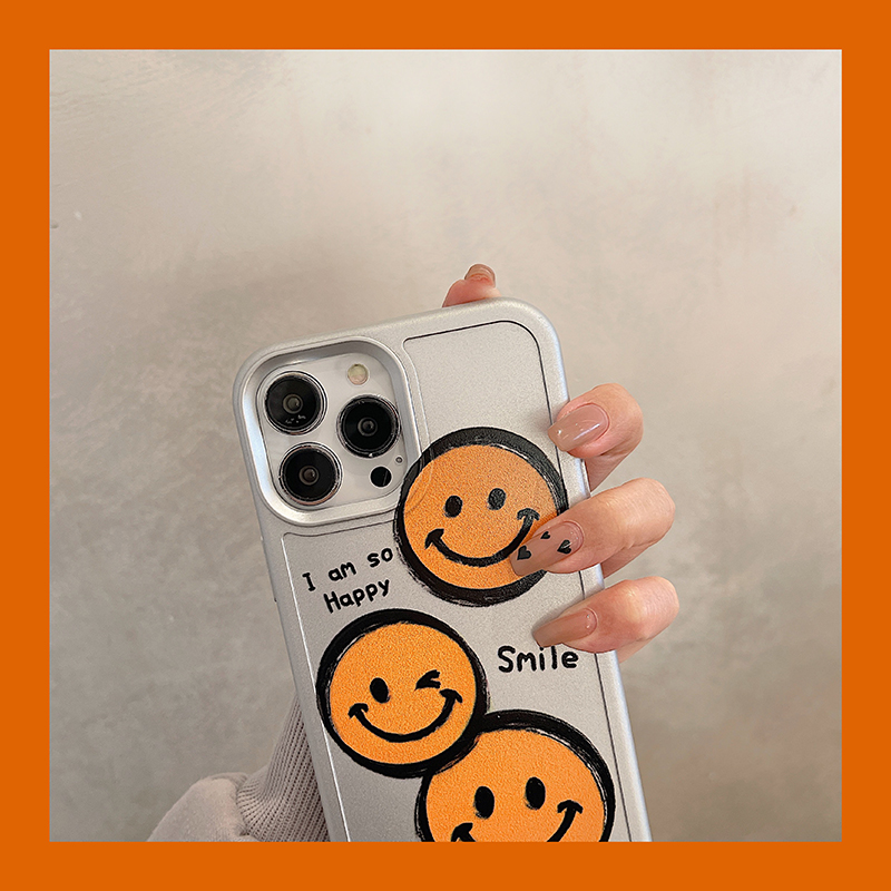 日韓簡約英文笑臉適用iphone14pro手機殼13promax蘋果12新款x情侶xr個性xs網紅max高級感xsmax防摔plus女11套
