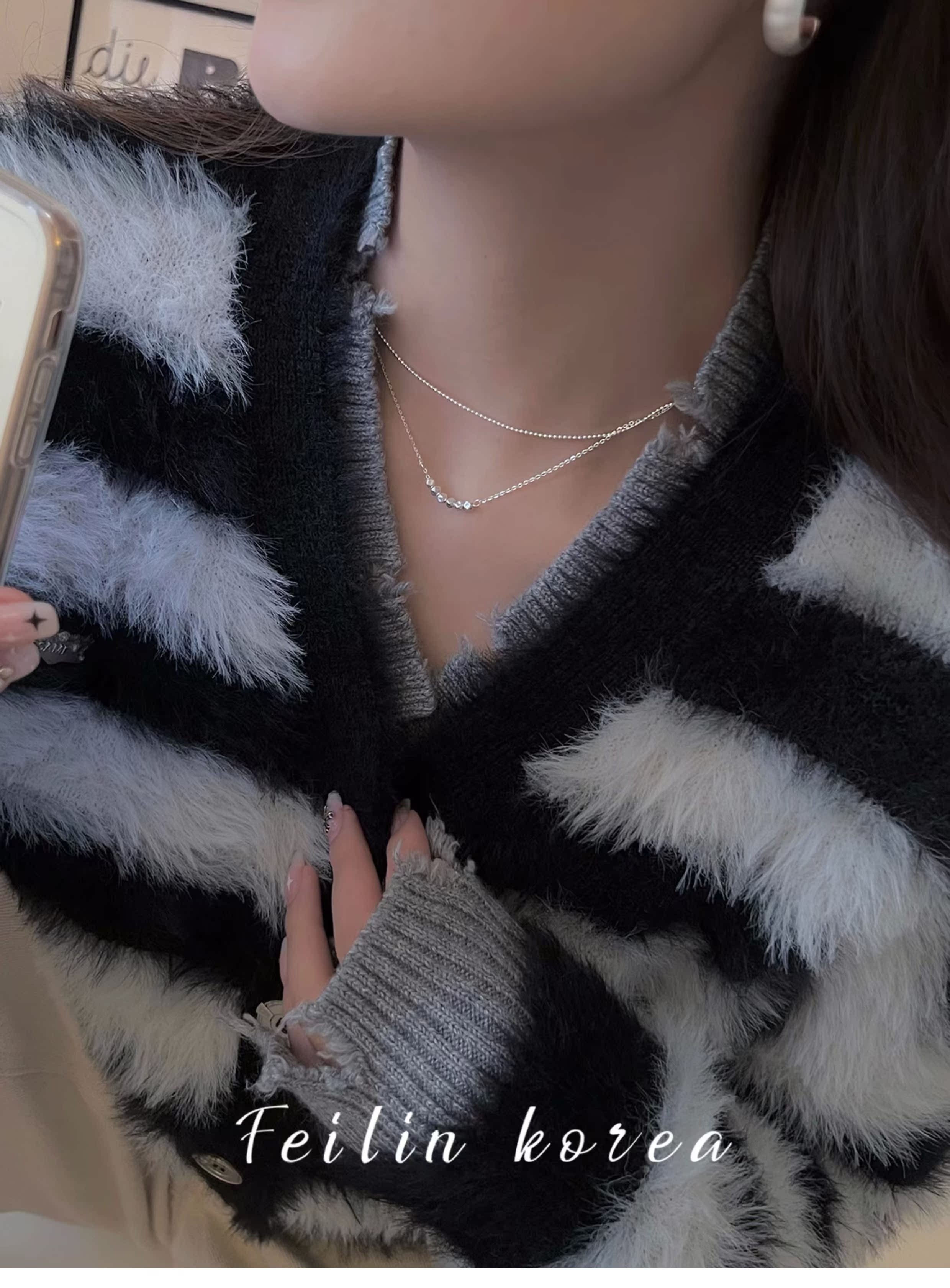 碎銀項鏈雙層純銀毛衣鏈2023年新款高級感吊墜配飾衛衣鎖骨鏈女款