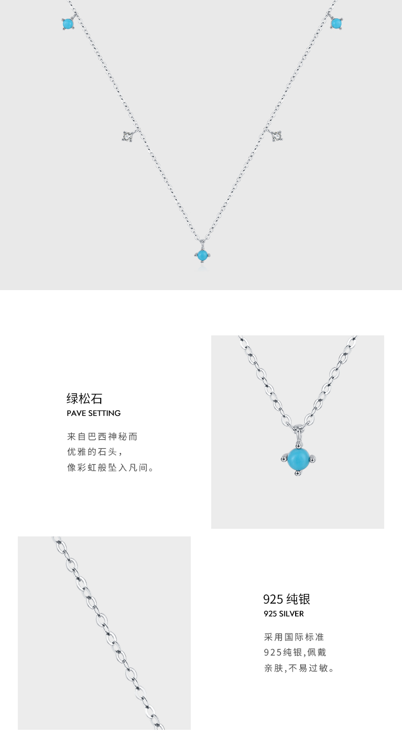 摩典S925純銀簡約綠松石項鏈女小眾時尚百搭個性鎖骨鏈日韓流行