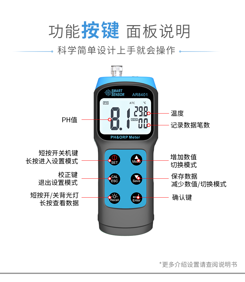 希瑪AR8401數顯高靈敏分體式ph計實驗室水產養殖水質酸堿度檢測儀