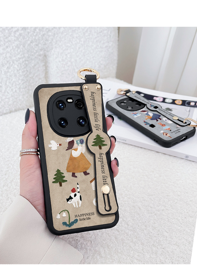 插畫澆花華為mate40pro手機殼腕帶支架mate30文藝斜挎帶掛繩mt40e新款30epro掛鏈小羊皮防摔復古女款保護套