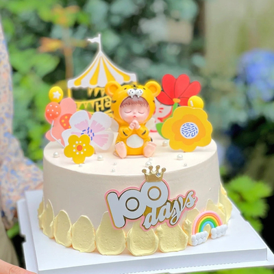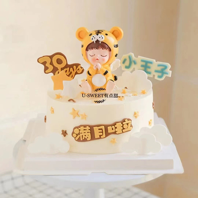 虎寶寶蛋糕烘焙裝飾擺件滿月周歲黃色小老虎男孩女孩生日插牌插件