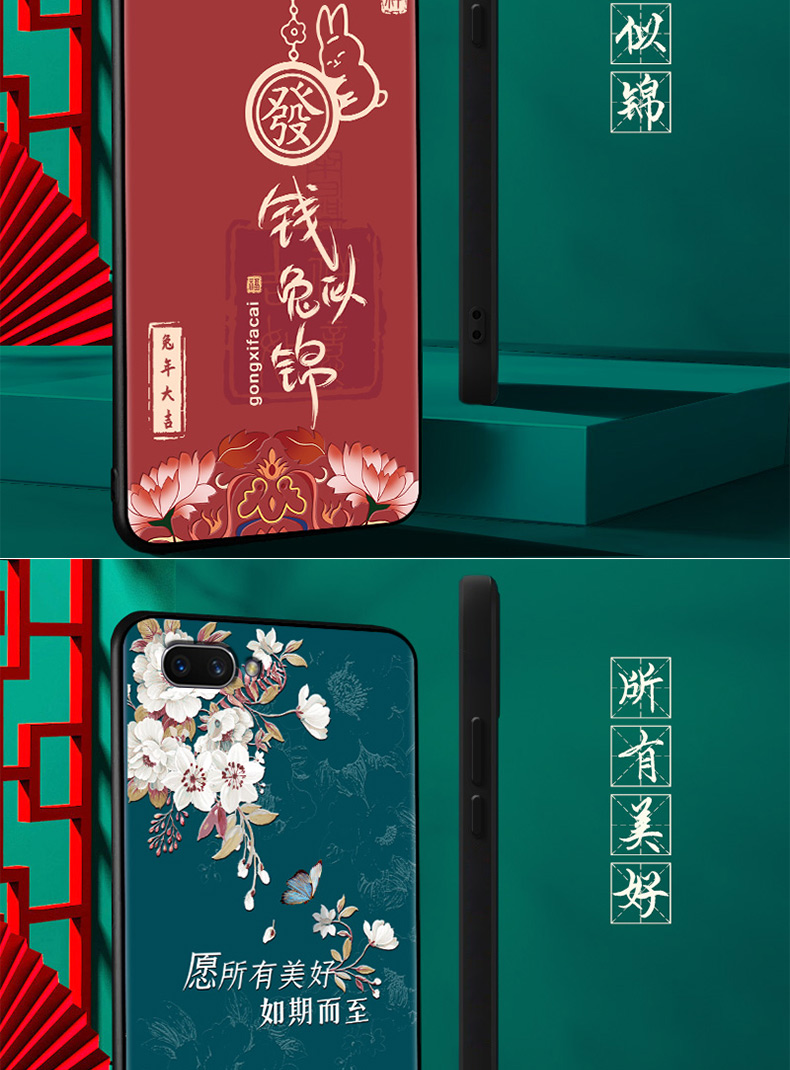oppoa5手機殼a55硅膠女款oppo a5手機保護套a55男中國風新款兔年防摔磨砂軟殼黑色全包送鋼化膜指環